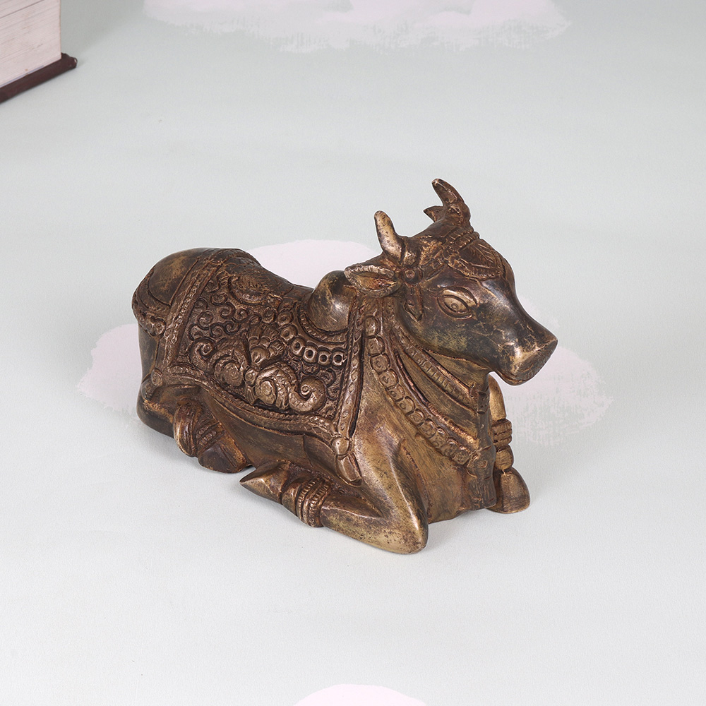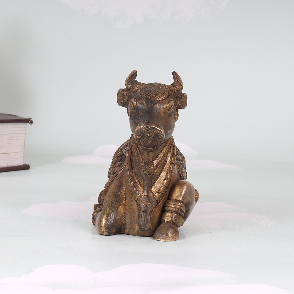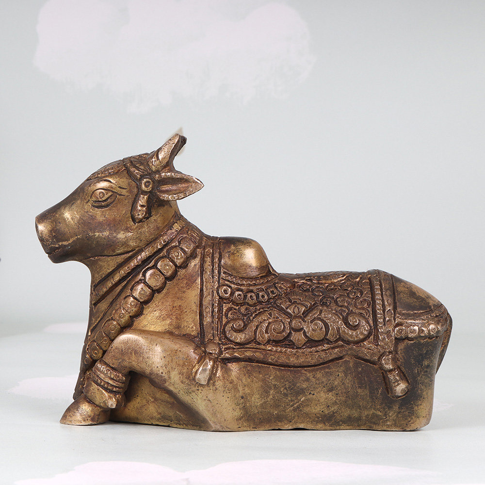 - Depicts the Nandi bull in a serene, contemplative sitting pose