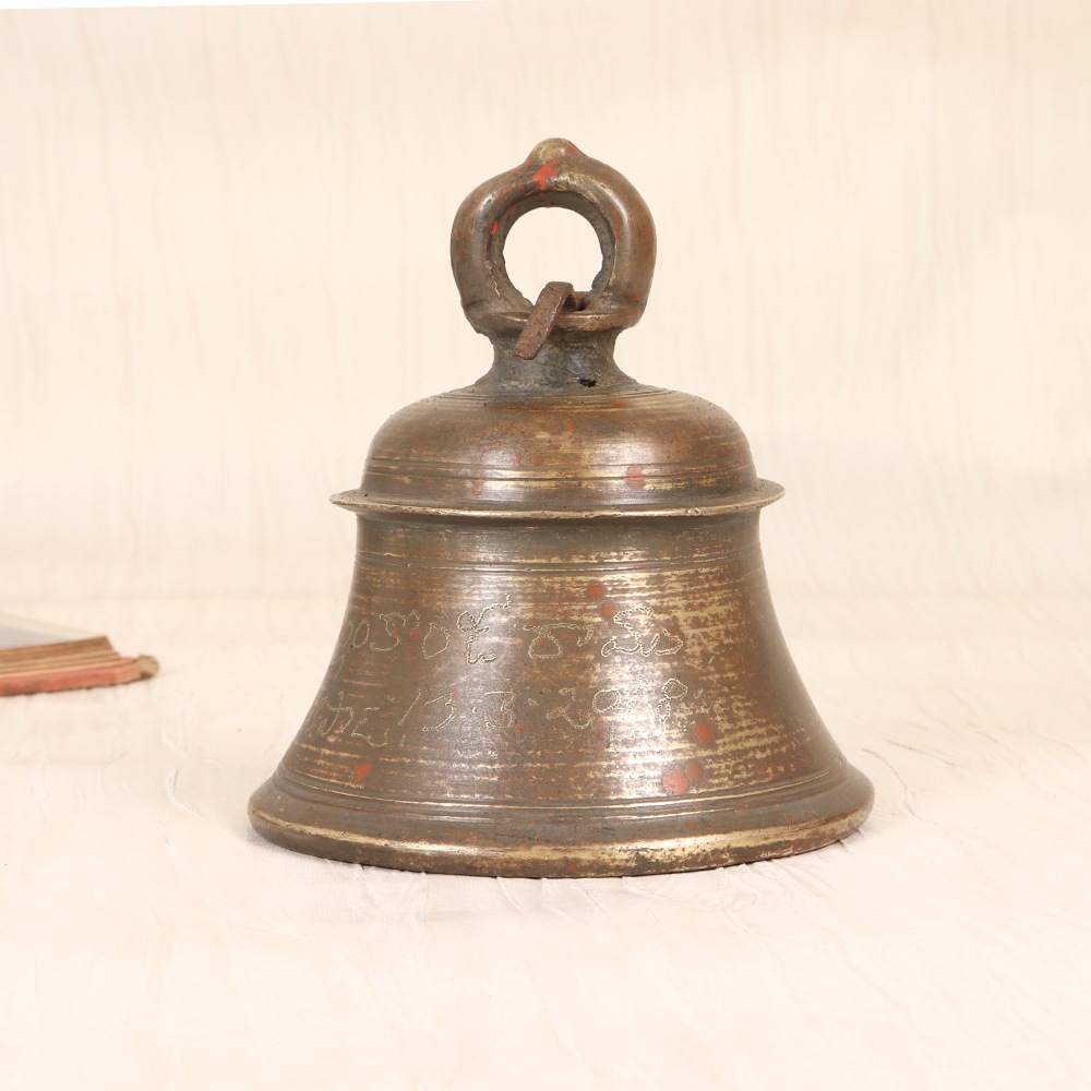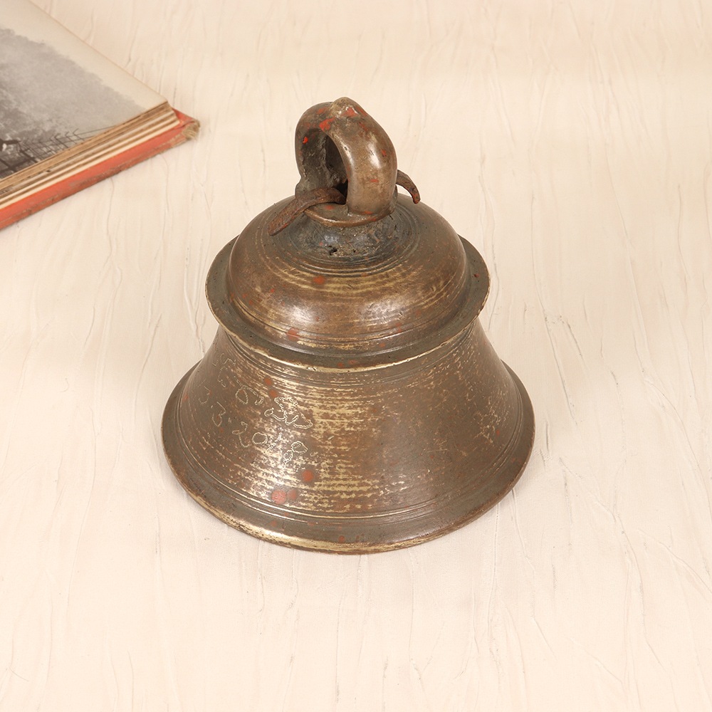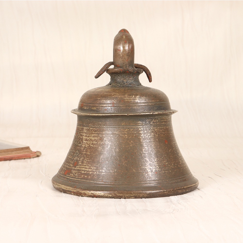 Prepare to be captivated by the enchanting chime of this vintage brass temple bell, expertly handcrafted by artisans in the heart of Central India. Forged from solid brass, this stunning piece exudes an air of authenticity and timeless elegance that will elevate the ambiance of any space. The bell's loop at the top allows you to hang it with ease, inviting its soothing tones to permeate your environment. Whether you choose to display it in your living room, meditation space, or outdoor garden, this temple bell will become a mesmerizing focal point that commands attention. As the bell rings, it emanates a rich, resonant sound that promotes feelings of tranquility and calm. Use it as a tool for meditation, prayer, or simply to create an atmosphere of peace and harmony in your home or workplace. Its restorative properties will help you unwind, clear your mind, and cultivate a deeper connection to the present moment. Perfect for the spiritually-inclined or those who appreciate the beauty of handcrafted, authentic decor, this vintage brass temple bell is a must-have accessory. Embrace the ancient wisdom of this timeless piece and let its enchanting chime transform your daily life.
