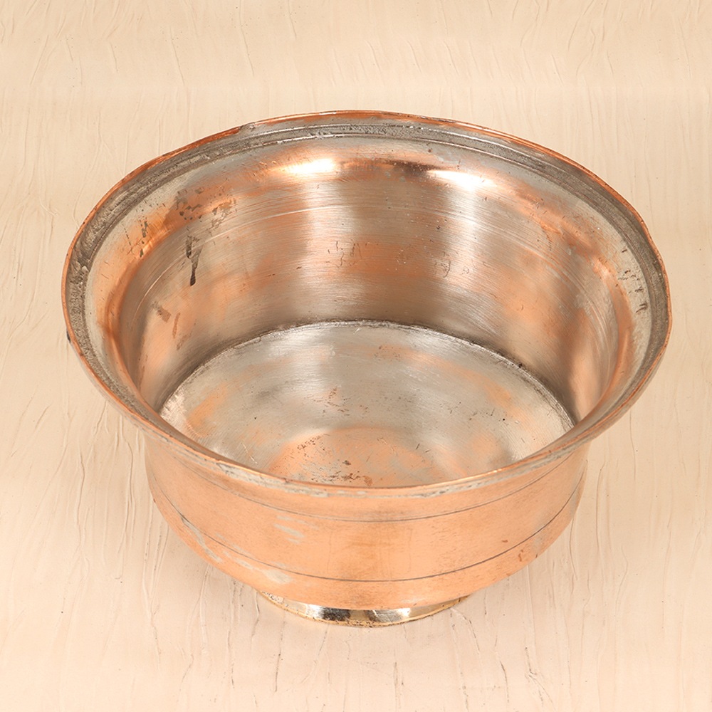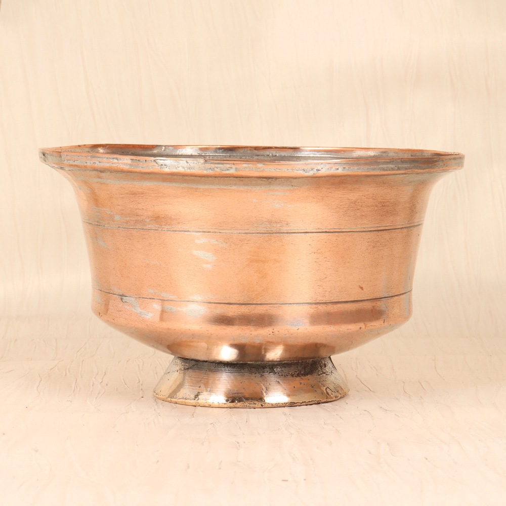 Elevate your living space with the captivating beauty of this handcrafted vintage copper pot, a testament to the enduring artistry of the Islamic tradition. Crafted from solid copper with a plain, natural finish, this exquisite piece seamlessly blends form and function, making it a true showstopper in any room. Whether you choose to display it with a vibrant floral arrangement or use it for serving, this versatile pot will infuse your space with a warm, timeless ambiance that celebrates the rich heritage of Islamic craftsmanship. The durable copper construction ensures it will withstand the test of time, becoming a cherished heirloom to be passed down through generations. Ideal for those who appreciate the beauty of authentic, handmade home accents, this vintage copper pot is a must-have for discerning decor enthusiasts. Embrace the rustic elegance it brings, and let it become the centerpiece that inspires your entire design aesthetic.