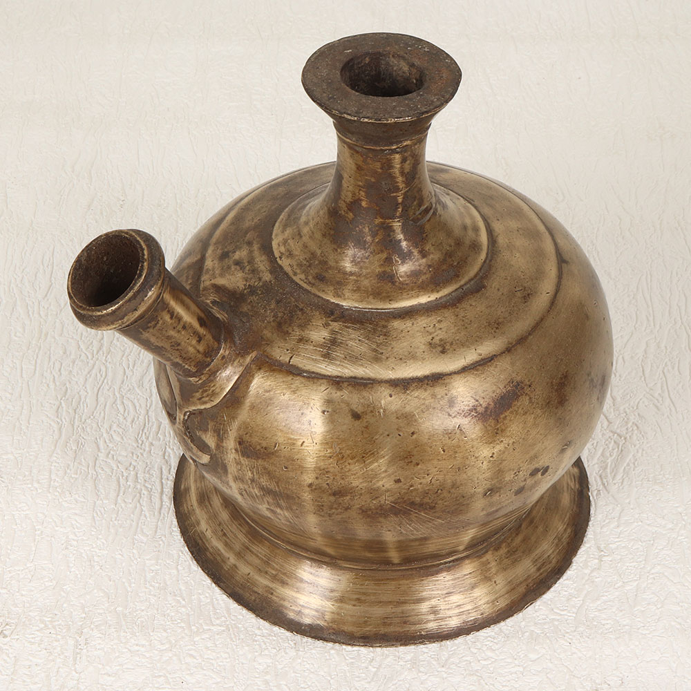 Immerse yourself in the timeless allure of this exquisite vintage brass hookah base which is a testament to the artistry of highly talented Indian artisans in Himalayan Art. Handmade with meticulous craftsmanship, this enchanting piece boasts a lustrous antique brown finish, evoking a sense of nostalgia and sophistication. Crafted from high-quality brass, the hookah base not only exudes a sense of authenticity but also promises durability. Its versatile design transcends the boundaries of traditional use, allowing it to seamlessly integrate into various settings. Transform your living space, office, restaurant, hotel, or cafe by repurposing this artisanal masterpiece as an indoor flower pot, adding a touch of elegance and history to any environment. This unique hookah base is a treasure for collectors, serving as a captivating addition to vintage enthusiasts' curated displays. Its rich, warm tones and intricate detailing make it a standout piece that captures the essence of a bygone era. Celebrate special moments by gifting this timeless creation to your family, friends or relatives on occasions that demand a touch of cultural richness, be it a festive celebration or an auspicious gathering. Embrace the fusion of art and functionality with this vintage brass hookah base that is a symbol of enduring craftsmanship and aesthetic refinement.
