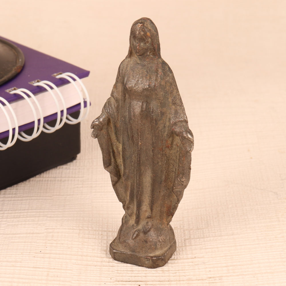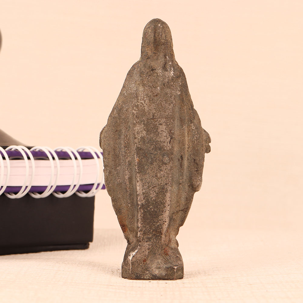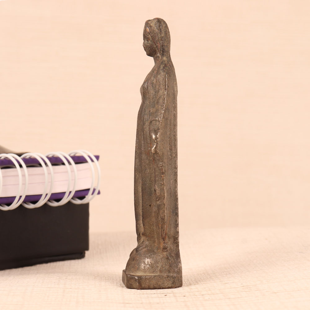Buy a metal statue of Mother Mary online and get a hassle free delivery at your doorstep. Crafted with unparalleled precision by skilled craftsmen, this timeless masterpiece showcases the essence of English Art. Standing in graceful repose, the statue of Mother Mary exudes a sense of serenity and grace that is truly captivating. Its antique gray finish lends an air of antiquity, making it a striking addition to any setting. Meticulously handcrafted from high-quality metal, this statue is a testament to the artisan's dedication to perfection. Whether you choose to place it in your home, office, restaurant, hotel, cafe, or shop, this statue will infuse an aura of tranquillity and elegance into the space. Collectors of vintage treasures will find it a prized addition to their collection, and it makes for a thoughtful gift on special, festive, or auspicious occasions. Invite the divine into your surroundings with this metal statue of Mother Mary, an embodiment of craftsmanship and spirituality that will be cherished for generations to come.