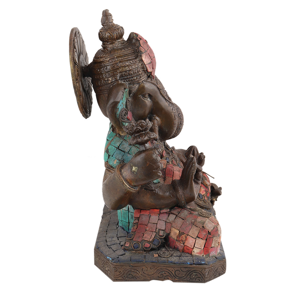 This gorgeous brass sitting lord Ganesha statue with teal and red stone inlay work makes it the perfect home, office, and hotel decoration item. An ideal wedding gift, Diwali, and spiritual gift for your loved ones.
