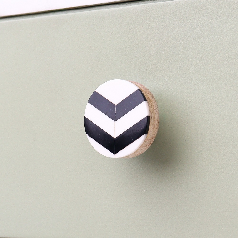 This knob is carefully handcrafted from a blend of wood and resin, ensuring both durability and an artistic flair. The thoughtfully applied contrasting black and white tones create a beautifully balanced design that fits various décor styles—from modern and minimalist to rustic and bohemian.