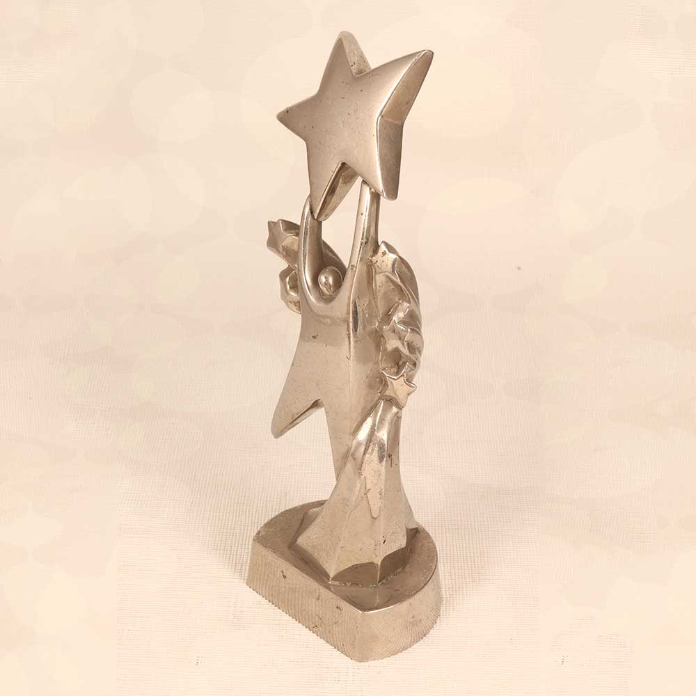 Make an impact with the impressive Brass Nickel Plated Trophy! This substantial award features a stately antique brass base and a nickel-plated figure holding up a star, perfect for honoring major achievements. This first-class trophy makes a powerful statement every time it's seen. The antique brass base gives a sophisticated, timeless look while the nickel accents add modern style. Whether awarded for athletic excellence, academic success, or professional accomplishments, recipients will proudly display this trophy for years as a reminder of their outstanding achievement. Give the recognition they deserve with the Brass Nickel Plated Trophy. This motivational award delivers lasting impact to commemorate life's major victories.