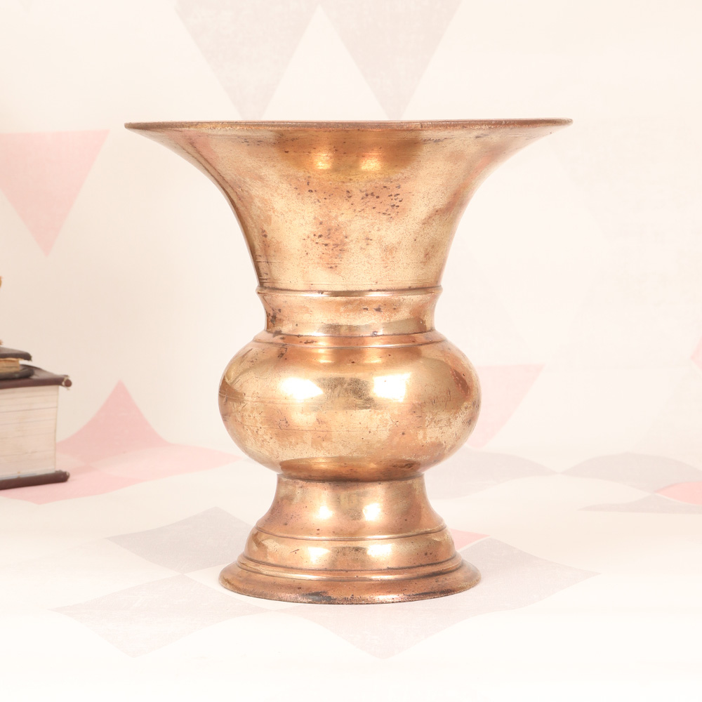 Elevate your indoor garden with this stunning vintage brass flower pot, a true work of South Indian art. Crafted with meticulous attention to detail, this piece brings the rich cultural heritage of India into your home. More than just a container for your plants, this brass flower pot is a captivating centerpiece that will draw the eye and start conversations. The earthy tones of the plain brown finish complement a variety of decor styles, from boho-chic to modern farmhouse. And the detailed South Indian art adds an exotic, worldly touch that will make your space feel truly one-of-a-kind. Whether you use it to showcase a lush, trailing plant or simply admire it as a standalone piece, this brass flower pot will infuse your home with the vibrant spirit of India. Its handcrafted quality and timeless design make it a treasure you'll enjoy for years to come. Elevate your indoor oasis and bring the beauty of South Indian art into your life.