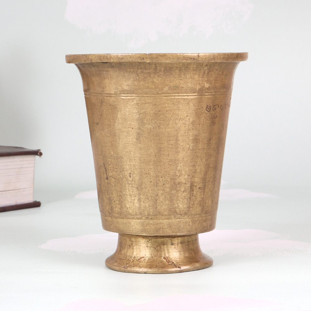 Immerse yourself in the rich cultural tapestry of South India with this stunning vintage brass holy glass, a masterpiece of artisanal craftsmanship. Designed to captivate the senses and deepen your devotional practice, this sacred vessel is a testament to the enduring traditions of the region. As you gaze upon the flickering flame within this holy glass, let it transport you to a realm of profound contemplation and inner transformation. Embrace the captivating energy that emanates from this artifact, and let it become a touchstone for your spiritual practice. Whether you're seeking solace, guidance, or a deeper connection with the divine, this vintage brass holy glass will elevate your devotional experience and infuse your life with a renewed sense of purpose. Discover the beauty and significance of South Indian spirituality, and let this sacred vessel become a cherished companion on your journey of self-discovery.