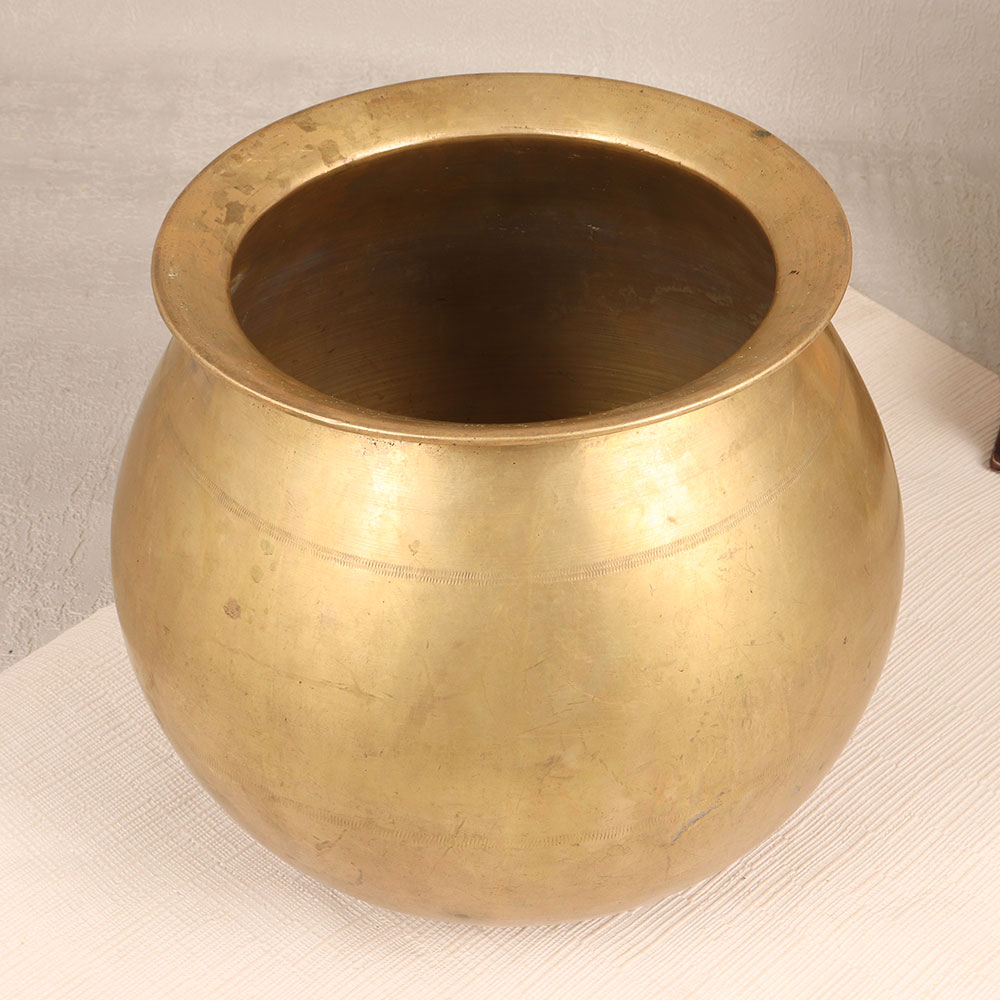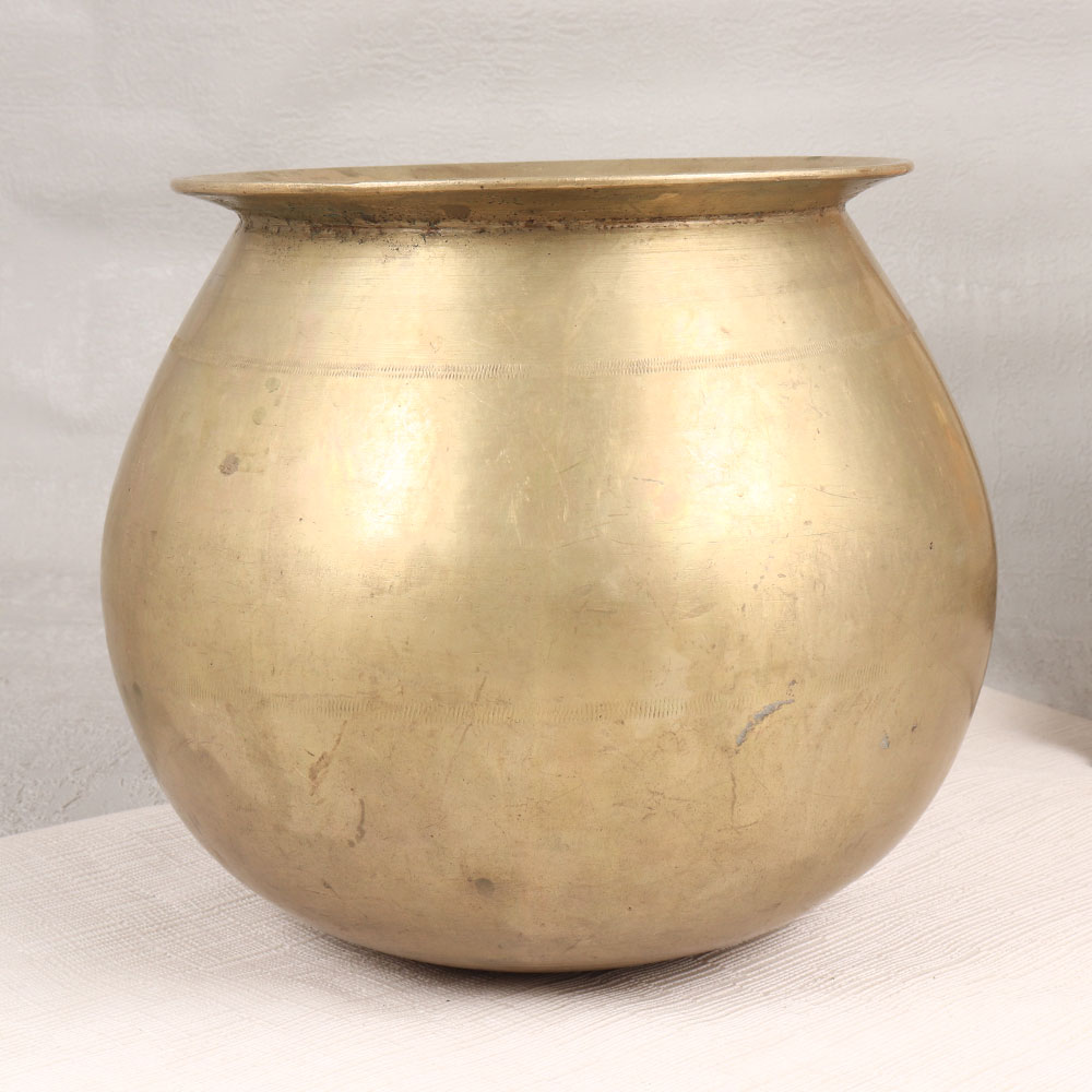 Immerse yourself in the timeless allure of this exquisite Vintage Brass Holy Pot which is a testament to the artistry of highly skilled Indian artisans in the revered South Indian tradition. Meticulously handcrafted from high-quality brass, this pot boasts an antique brown finish that adds a touch of nostalgia and elegance to any space. Ideal for adorning homes, offices, restaurants, hotels, or cafes, this versatile piece serves as a unique and captivating flower pot. Its classic design seamlessly blends with various decor styles, creating a charming ambiance that transcends eras. More than a mere decorative item, this holy pot beckons to be a cherished addition to your vintage collection. The warm patina and intricate detailing showcase the craftsmanship passed down through generations, evoking a sense of cultural richness. A thoughtful and timeless gift, this brass holy pot can be presented to your family, friends or relatives on special, festive, or auspicious occasions, carrying with it the essence of tradition and the artistry of Indian heritage. Elevate your space with this symbol of cultural finesse and timeless beauty.
