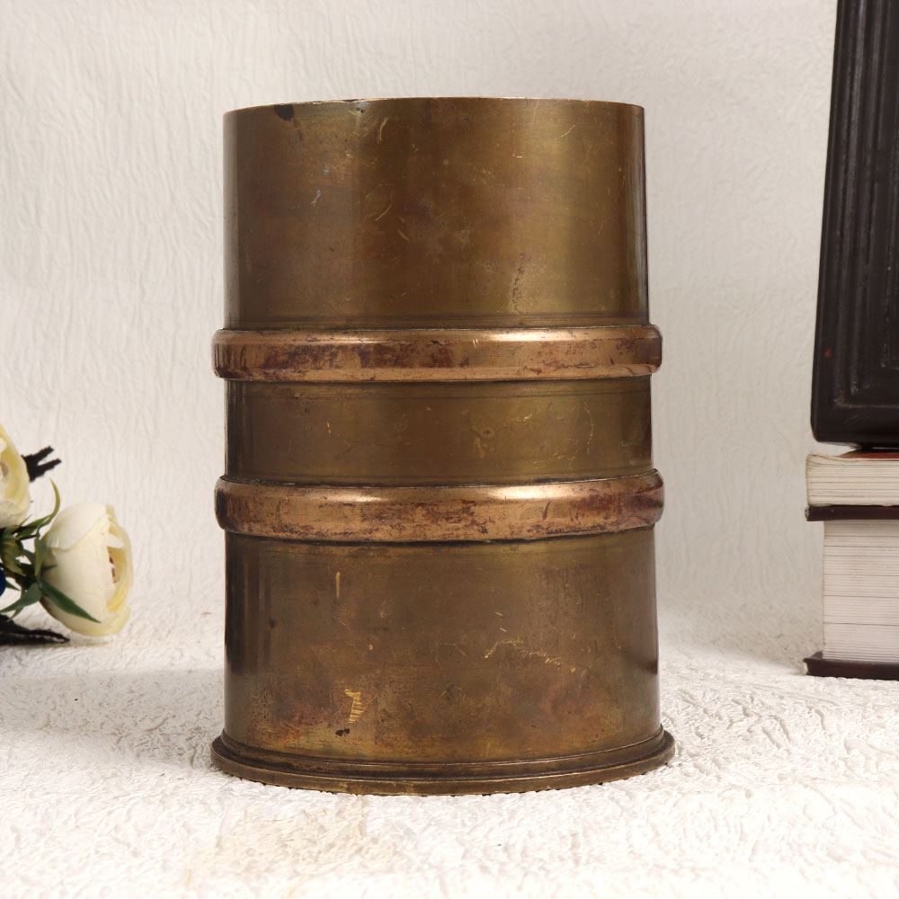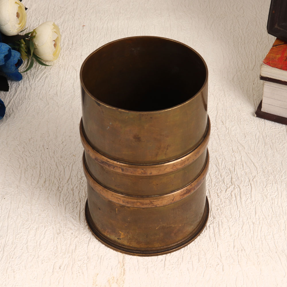 Enhance your interior with a touch of tradition and elegance through this exquisite Vintage Brass Holy Water Pot. Crafted in a charming cylindrical shape and finished in an antique brown hue, this piece is a testament to the timeless artistry of professional Indian artisans, particularly drawing inspiration from South Indian craftsmanship. Handmade with utmost precision from high-quality brass, this holy water pot not only serves as a beautiful decorative item but also holds immense cultural significance. Its versatility allows it to grace various settings, including homes, offices, restaurants, hotels, cafes, or shops. This unique piece comes to life during havans, rituals, and auspicious occasions, as it traditionally contains holy water for ceremonial use. Embrace the richness of Indian culture by adding it to your vintage collection or presenting it as a heartfelt gift to your family, friends or relatives on special, festive, or auspicious occasions. It carries with it the charm of yesteryears, making it a symbol of heritage and devotion, sure to enchant all who encounter its beauty.