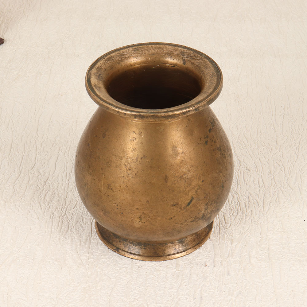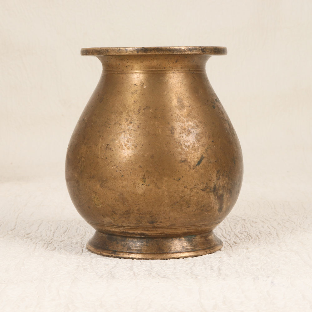 This Vintage Brass Holy Water Pot is a masterpiece handcrafted by talented Indian artisans from South India. Made with meticulous attention to detail, this exquisite piece is crafted from high-quality brass, ensuring durability and authenticity. The antique brown finish adds a touch of antiquity, making it not just a ritualistic tool but also a captivating decor item. This holy water pot has a versatile purpose, serving during rituals, havans, and temple ceremonies, where it is traditionally used to offer water to the revered Shivling. Its sacred significance is seamlessly blended with aesthetic appeal, making it a perfect addition to your home, office, restaurant, hotel, or cafe for decorative purposes. The pot is not just an item of religious reverence but also a timeless addition to any vintage collection. Whether you seek a meaningful piece for your spiritual practices or desire an exquisite decor item, this Vintage Brass Holy Water Pot fulfills both purposes. Additionally, it makes for a thoughtful and cherished gift for your family, friends or relatives on special, festive, or auspicious occasions, adding a touch of tradition and grace to their lives. Embrace the divine heritage and craftsmanship embodied in this sacred artefact.