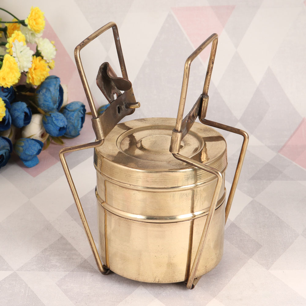 Buy a Brass Tiffin Box online with a captivating antique brown finish and a charming lock mechanism. Handcrafted by professional Indian artisans with a profound love for their craft, this exquisite piece is a testament to their dedication and expertise. Originally designed for the purpose of carrying meals, this vintage brass tiffin box has transcended its utilitarian roots to become a work of art. Its aged patina and intricate detailing evoke a sense of nostalgia and authenticity that adds character to any space. With two spacious compartments, it provides a touch of old-world elegance to your home, office, restaurant, hotel, or cafe decor. Place it on a rustic wooden shelf, a vintage-inspired table, or even use it as a unique centerpiece to spark conversations among guests. This antique brass tiffin box makes for an exceptional gift for your family, friends or relatives on special, festive, or auspicious occasions. Celebrate the charm of Indian craftsmanship and bring a piece of history into your world with this exquisite decorative masterpiece.