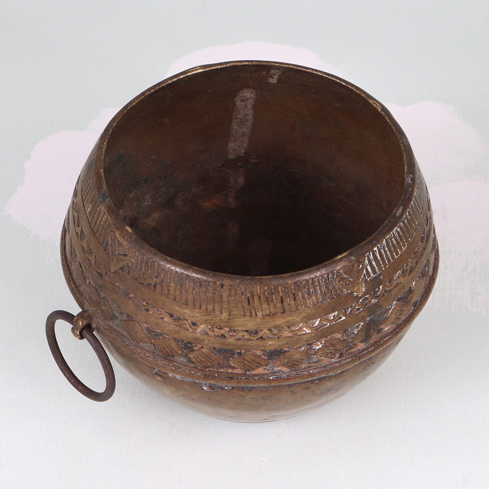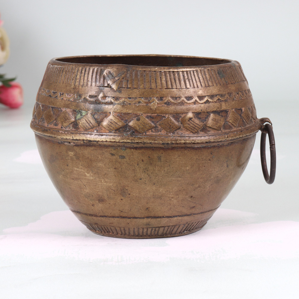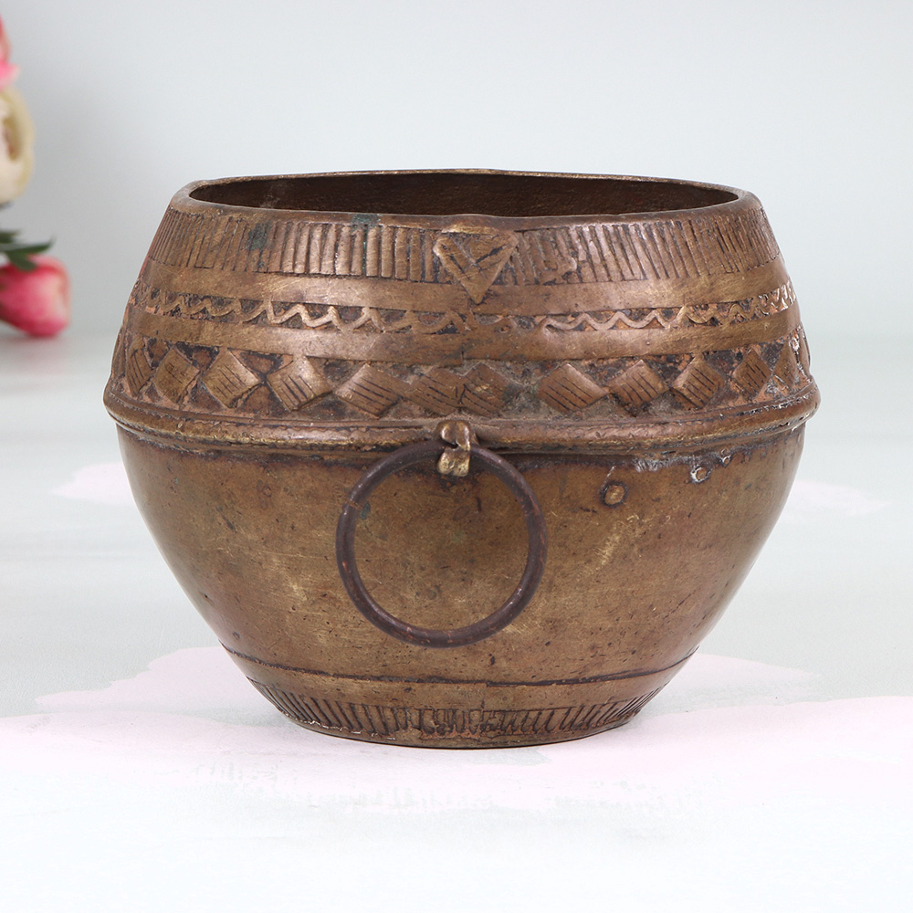 Step back in time and immerse yourself in the captivating world of Odisha's artisanal legacy with this stunning vintage brass rice measurement bowl. Crafted with meticulous attention to detail by skilled artisans, this functional and decorative piece is a testament to the rich cultural heritage of this Indian state. Imagine the countless meals and memories this bowl has witnessed over the years, from bustling family kitchens to ceremonial gatherings. Now, you can bring that sense of history and tradition into your own home, using this captivating piece as a centerpiece, a trinket holder, or a reminder of the beauty that lies in the simple things. Whether you're a collector of vintage wares, a lover of Odisha's rich cultural heritage, or simply someone who appreciates the art of mindful living, this vintage brass rice measurement bowl is a must-have addition to your home. Elevate your décor, connect with the past, and enjoy the timeless allure of this truly special piece.