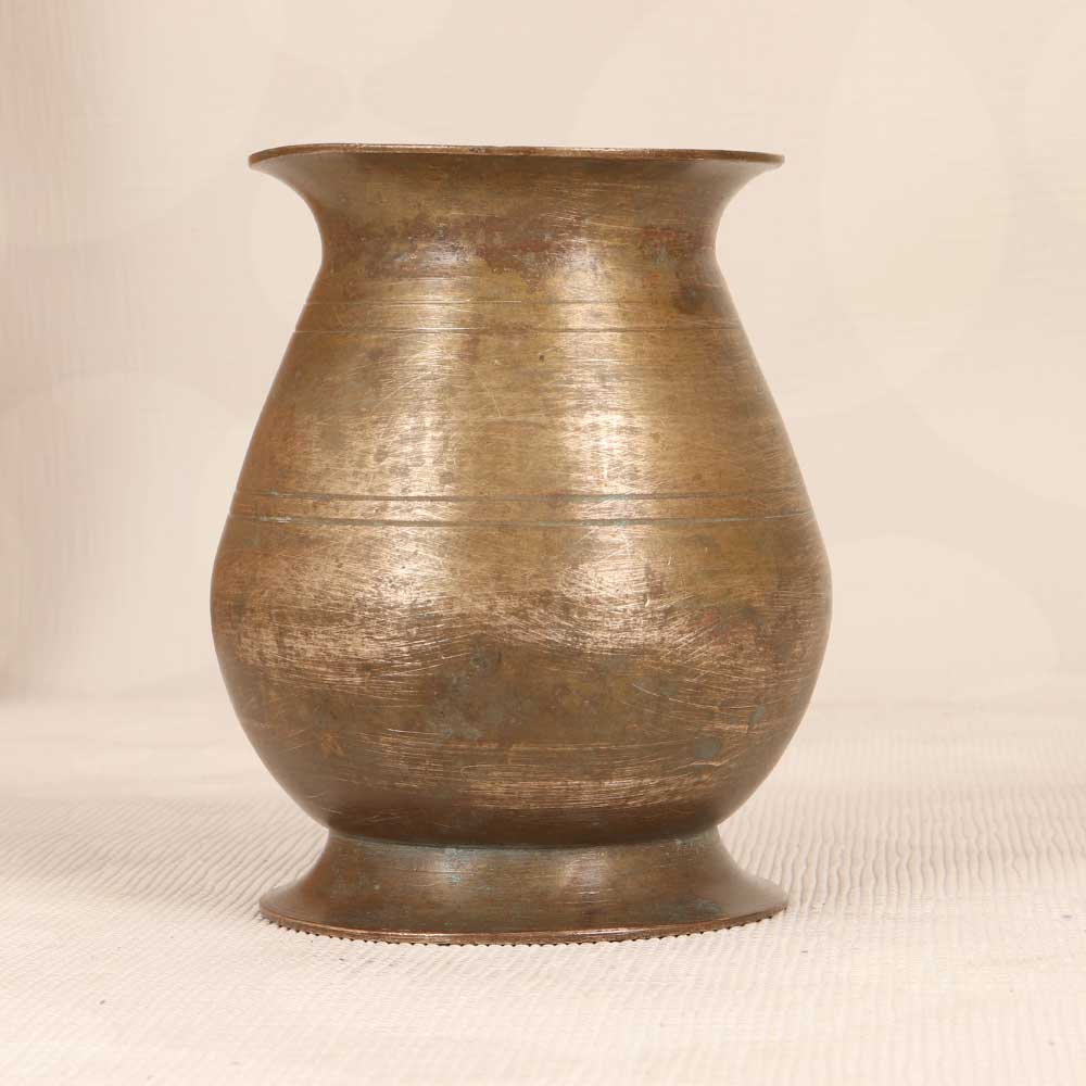Elevate your sacred space with this vintage-inspired brass holy water pot. With its minimalist form and plain brown finish, this vessel brings an air of quiet reverence. During prayer and rituals, fill this brass pot with sacred water for cleansing and blessing. As you anoint yourself or your space, the cool water and smooth metal connect you to ancient traditions. The graceful shape and earthy finish impart a simple elegance to altar spaces and meditation corners. Beyond the spiritual, this versatile vessel makes an elegant vase for dried grasses or fresh blooms. Perfect for those wanting a special pot for religious rituals or everyday home decor. With its neutral tones, it works in any style from modern farmhouse to traditional. Bring beauty and sacredness into your home with this special brass holy water pot.