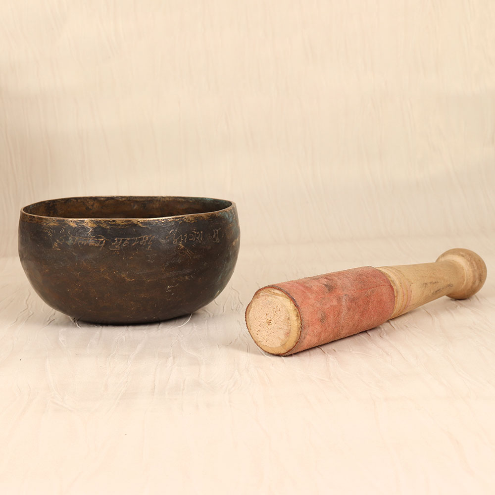 Unlock the transformative power of Tibetan singing bowls with this exquisite bell metal om bowl. Crafted with meticulous attention to detail, this vintage-inspired piece delivers a mesmerizing "om" vibration that guides your mind into a state of deep relaxation and inner peace. Simply strike the bowl gently with the included wooden mallet, and let the captivating tones wash over you, transporting you to a realm of pure serenity. Whether you're an experienced practitioner of meditation and mindfulness or simply seeking a natural way to unwind, this om singing bowl is a must-have addition to your wellness arsenal. Its beautifully etched design featuring the sacred om symbol lends an air of authenticity and spirituality to your practice, allowing you to deepen your connection to the ancient art of sound healing. Constructed from premium bell metal, this singing bowl is built to withstand frequent use, ensuring you can enjoy its restorative benefits for years to come.