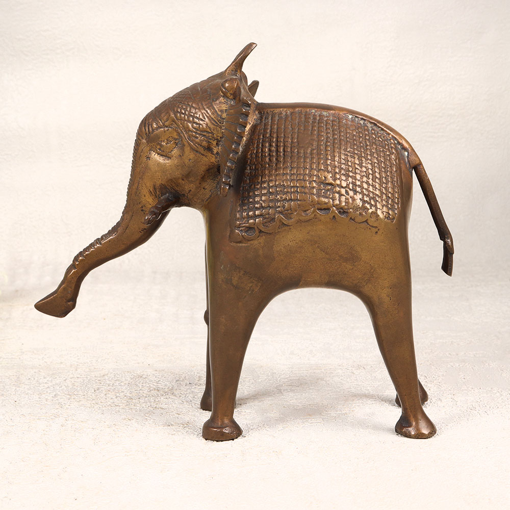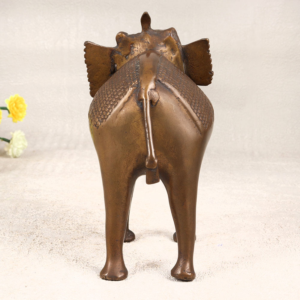 Immerse your space in the allure of timeless elegance with our exquisite brass Elephant statue. Handcrafted by talented Indian artisans in the revered Tribal Art tradition, this majestic piece emanates cultural richness. The statue boasts a warm antique brown finish, enhancing its vintage charm and lending an air of sophistication to any setting. Crafted from high-quality brass, the attention to detail is evident in every curve and contour, making it a true work of art. Versatile in its appeal, this elephant statue is a perfect addition to your home, office, restaurant, hotel, or cafe, serving as a captivating centerpiece for decoration. Elevate your surroundings and add a touch of cultural finesse by incorporating this stunning piece into your vintage collection. Celebrate special occasions with a thoughtful touch by presenting this brass Elephant statue as a cherished gift to your family, friends or relatives. Its symbolic significance, coupled with its impeccable craftsmanship, makes it a meaningful and memorable gesture for festive or auspicious moments. Embrace the artistry of tradition with this timeless masterpiece.