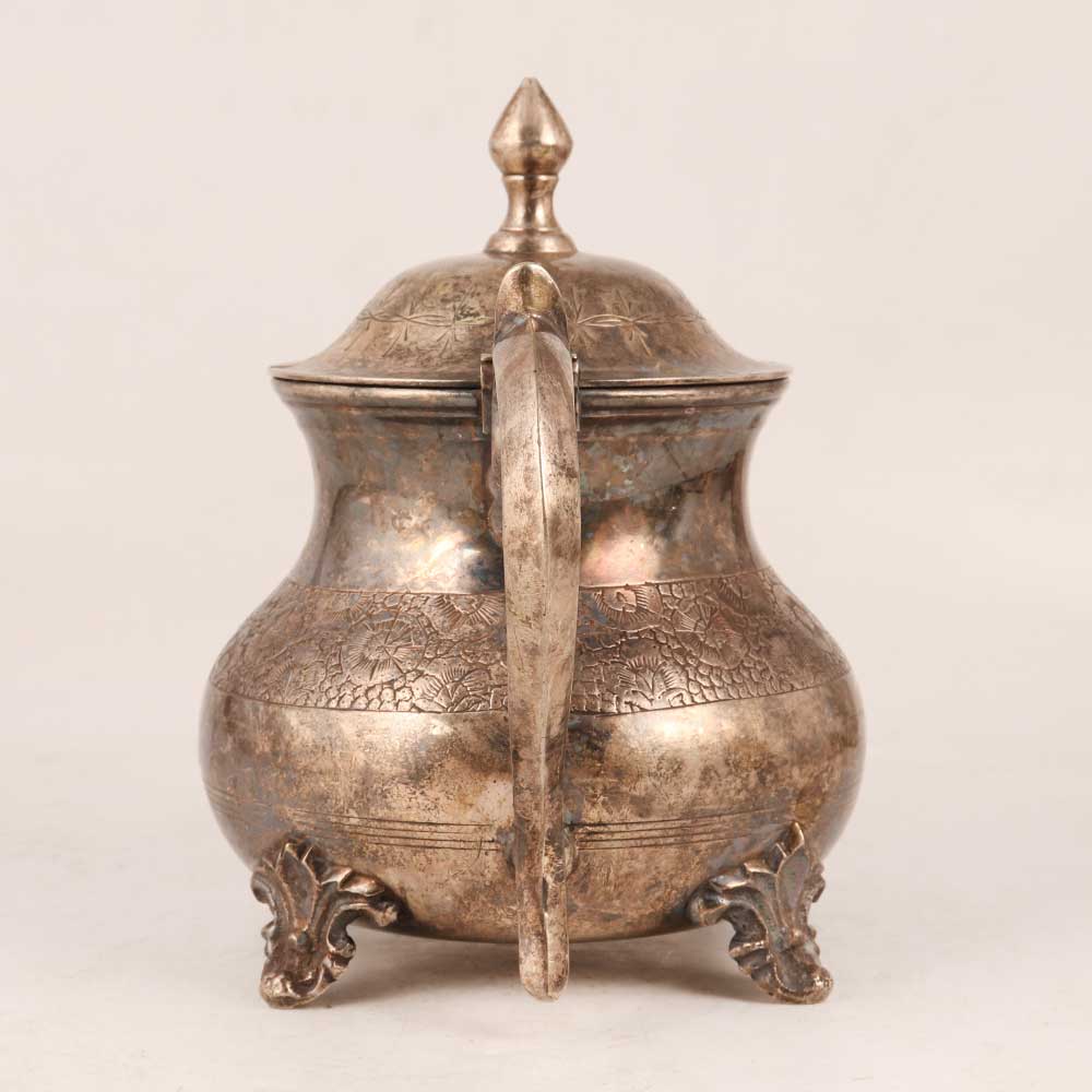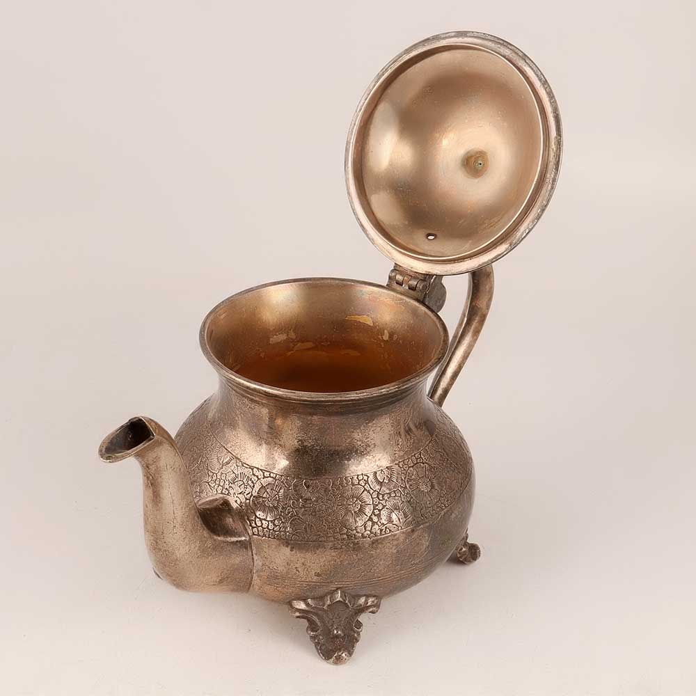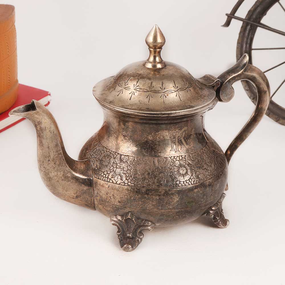 Transport yourself back to a bygone era with this exquisite vintage brass kettle. Adorned with intricate, beautiful designs, this remarkable piece is a testament to the skilled craftsmanship of Indian craftsmen. The kettle boasts a classic antique brown finish that adds an aura of nostalgia to any space it graces. Crafted from high-quality brass, this kettle features a sturdy lid and a graceful spout, harking back to the days when it was cherished for its role in serving delightful tea gatherings. However, with age, it has become more suitable as a decorative item rather than for cooking purposes. Supported by four elegant legs, this kettle can sit proudly on any surface, be it at home, in an office, a restaurant, a hotel, or a quaint cafe, elevating the ambiance and transporting visitors to an era of sophistication and elegance. It is the perfect addition to any vintage collection, enhancing your decor or becoming a charming exhibit at exhibitions. Beyond personal use, this exquisite kettle makes for an exceptional gift to your loved ones on special, festive, or auspicious occasions, symbolizing tradition and a timeless appreciation for the past. Embrace the allure of history and relish the enchanting charm this vintage brass kettle brings to your world.