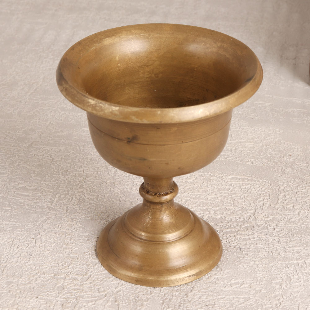 Enhance your prayer space with the timeless charm of our Vintage Brass Kumkum Cup Bowl which is a testament to exquisite craftsmanship rooted in South Indian artistry. Meticulously handcrafted by highly skilled Indian artisans, this kumkum cup is fashioned from high-quality brass, offering both durability and an unmistakable antique brown finish. Designed to store the sacred kumkum tilak, it adds a touch of tradition and spirituality to your home, office, restaurant, hotel, or cafe prayer room. With its vintage allure, this piece is not merely a functional item but a captivating addition to any antique collection. Its versatile elegance makes it a thoughtful gift for your family, friends or relatives on special, festive, or auspicious occasions, allowing them to cherish both the aesthetic and spiritual significance of this cultural artefact. Embrace the heritage of South Indian craftsmanship with this vintage brass kumkum cup bowl, bringing a sense of sacred tradition to your sacred space.
