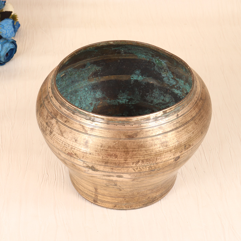 Elevate your decor with the Vintage Brass Pot from Gujarat - a captivating blend of traditional artistry and modern elegance. Crafted with meticulous attention to detail, this stunning piece is a true testament to the enduring skill of Indian artisans. This vintage-inspired pot is more than just a functional container - it's a work of art that will elevate the ambiance of any space. The rich, warm tones of the brass create a sense of timeless sophistication, while the simple, clean lines lend a contemporary feel. Whether you choose to display it on its own or fill it with lush greenery, this pot is sure to be the focal point of any room. Imagine the joy of bringing the vibrant colors and textures of nature into your home, all while enjoying the enduring beauty of this handcrafted piece. The Vintage Brass Pot from Gujarat is the perfect addition for the design-conscious homeowner who values quality craftsmanship and the charm of vintage-inspired decor. Transform your space and make a lasting impression with this stunning statement piece.