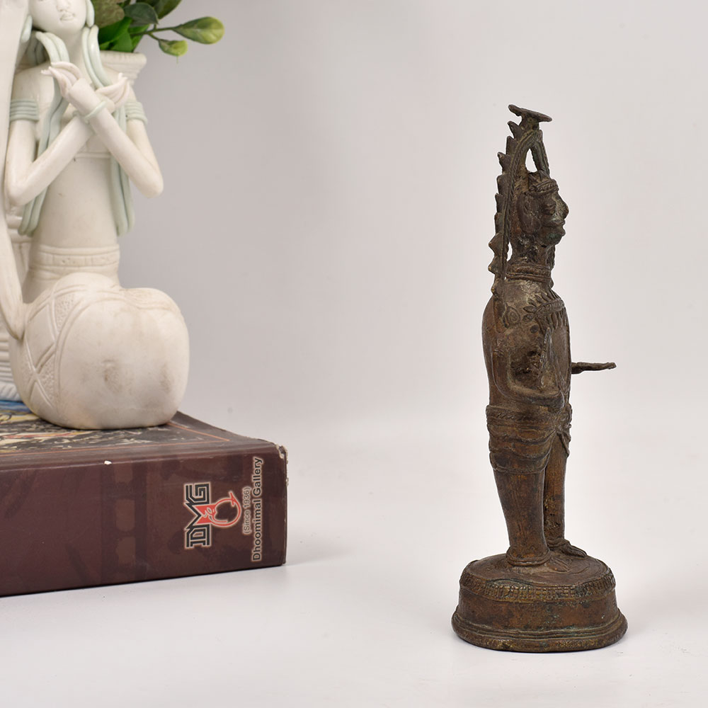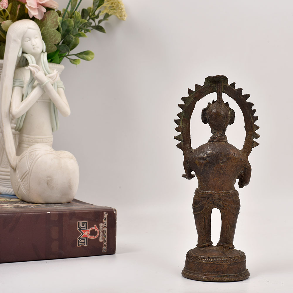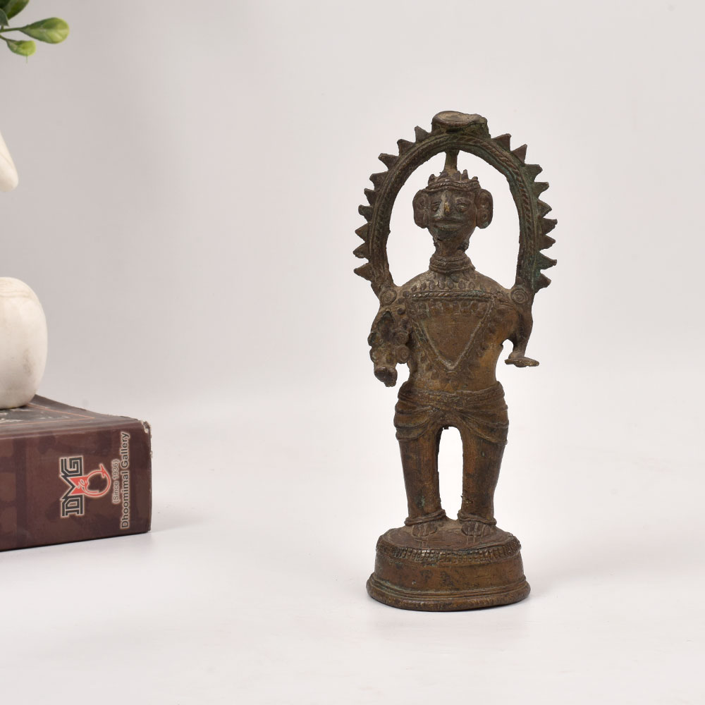 Elevate your home decor with the mesmerizing presence of this handcrafted brass tribal god figure. Crafted using the centuries-old Dhokra Art technique, this one-of-a-kind statue exudes an aura of spiritual power and cultural significance. Dhokra Art is an ancient Indian metalworking practice that has been passed down through generations. Each piece is a unique work of art, imbued with the skilled craftsmanship and cultural heritage of the artisans who create them. Display this tribal god figure in your living room, office, or meditation space to infuse your surroundings with a sense of timeless wonder and spiritual energy. Whether you're drawn to the rich history and cultural significance of tribal art or simply seeking to add a touch of global flair to your decor, this brass statue is sure to captivate. Its powerful presence will inspire mindfulness, creativity, and a deeper connection to the natural world. Invite the mystique of ancient traditions into your life and let this Dhokra Art masterpiece elevate your space with its mesmerizing allure.