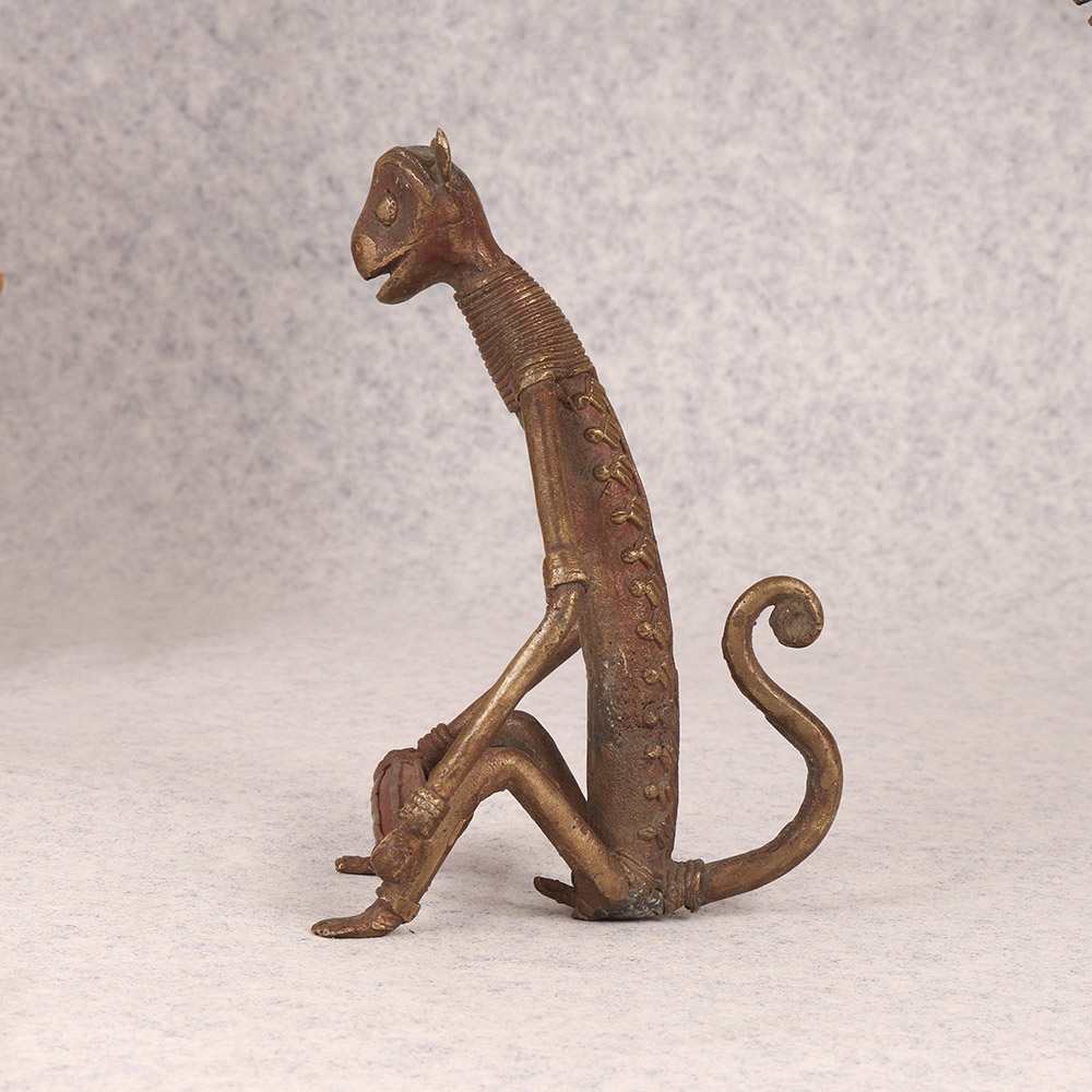 Elevate your home decor with the captivating presence of this Tribal Brass Monkey Statue. Crafted with meticulous attention to detail, this stunning piece blends the raw power of nature with the refined elegance of brass. This brass monkey statue is more than just a decorative item - it's a work of art that tells a story. The tribal motifs evoke the primal connection between humans and the natural world, while the brass construction gives it a sense of timeless sophistication. Place this mesmerizing monkey on your mantel, side table, or bookshelf, and let it transport you to a realm of wonder and mystery. Whether you're drawn to the beauty of the natural world, fascinated by ancient cultures, or simply appreciate fine craftsmanship, this tribal brass monkey statue is a must-have addition to your home. Its captivating presence will elevate your decor and inspire conversations with guests. Bring the spirit of the jungle into your living space and let this magnificent monkey statue be your guide to a realm of exotic beauty.