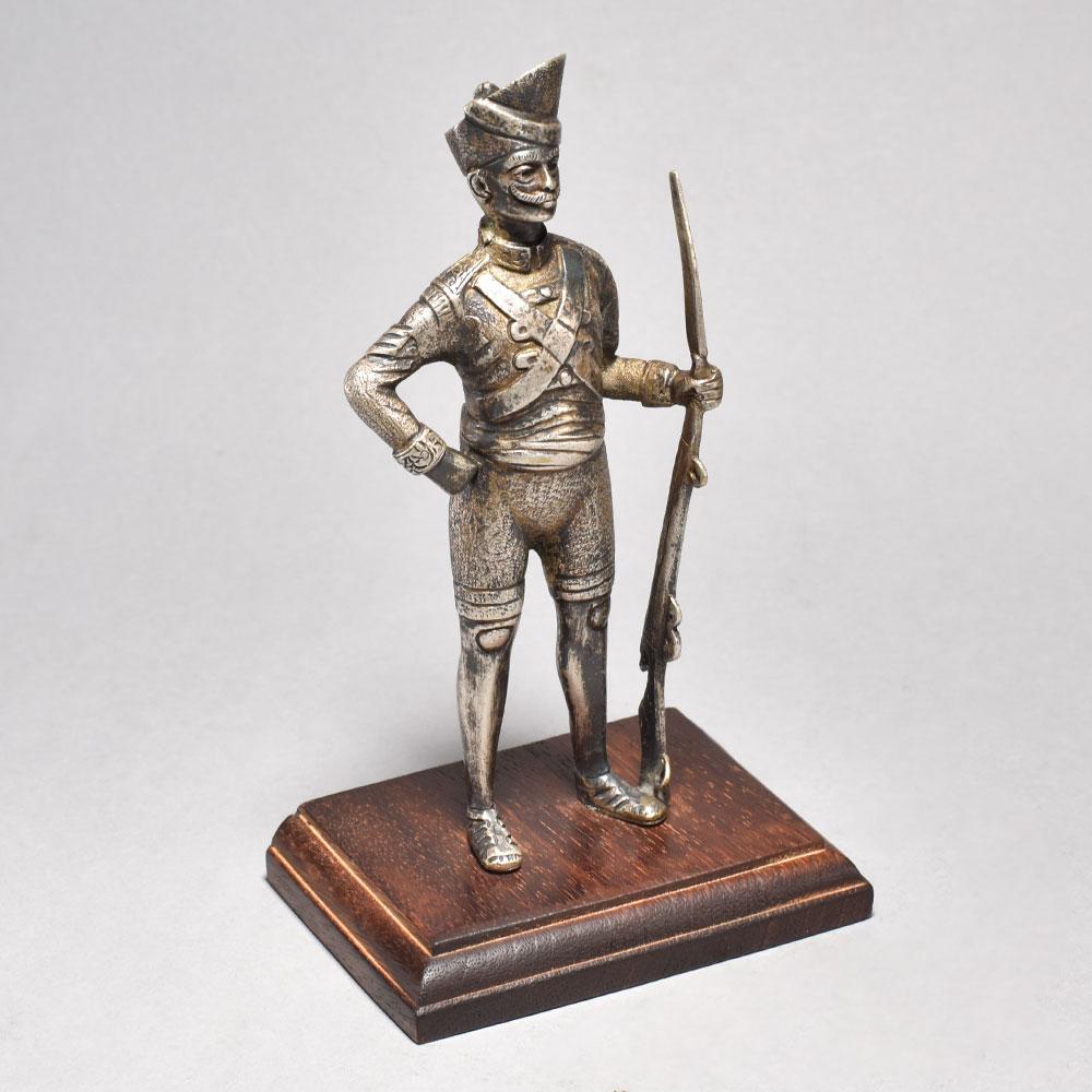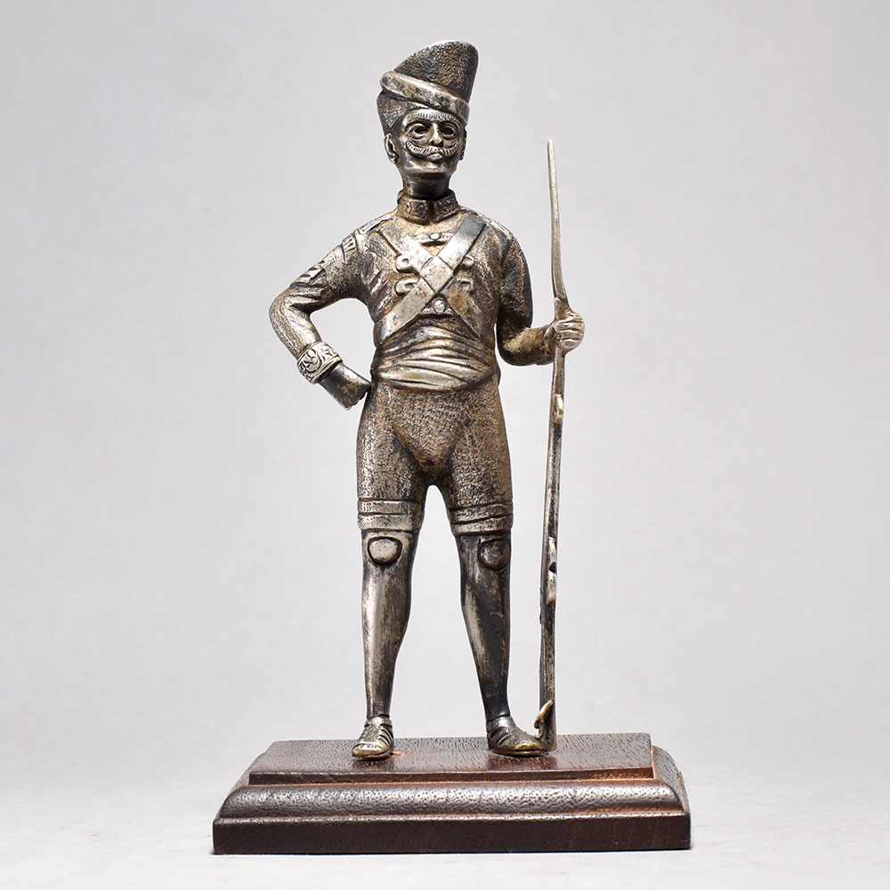Bring the heroic tales of the past to life with this stunning vintage soldier figurine.This exquisite brass soldier figurine is a captivating piece of history you can display in your home. The level of intricate detail in the soldier's uniform and weaponry is simply breathtaking. Picture him standing guard, ready to defend the noble ideals he represents. This striking vintage accent piece will transport you to a bygone era of valor and sacrifice. Whether you're a collector of military memorabilia or simply appreciate fine craftsmanship, this vintage soldier figurine is a must-have. It makes for a impressive conversation piece that will elevate the decor in your living room, office, or study. Showcase your appreciation for our brave servicemen of the past with this beautifully rendered brass statue. Meticulously crafted from solid brass This timeless piece is handcrafted by skilled artisans using time-honored techniques, ensuring each creation is truly one of a kind. Its versatile design makes it suitable for living rooms, bedrooms, offices, or meditation spaces, bringing a sense of heritage and style wherever it is displayed.