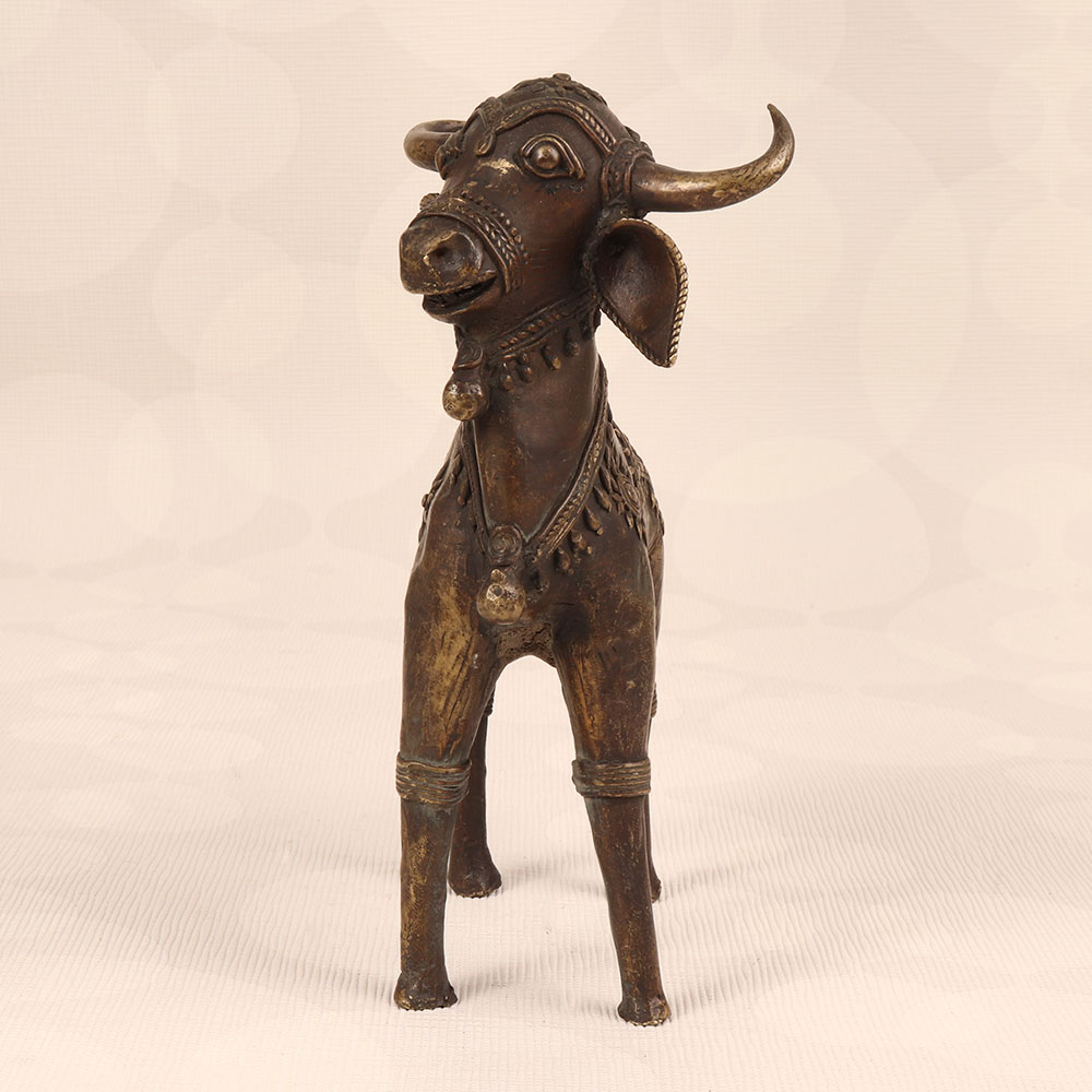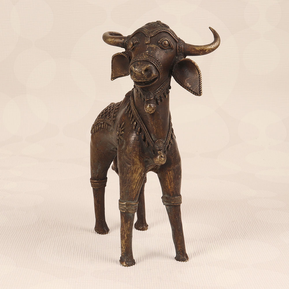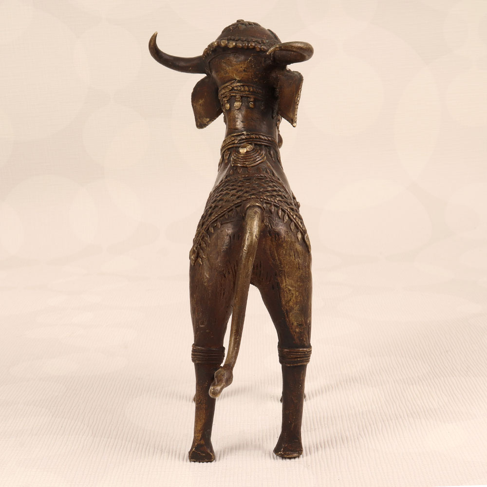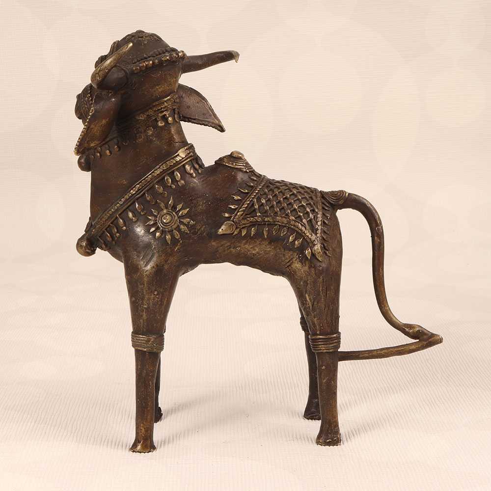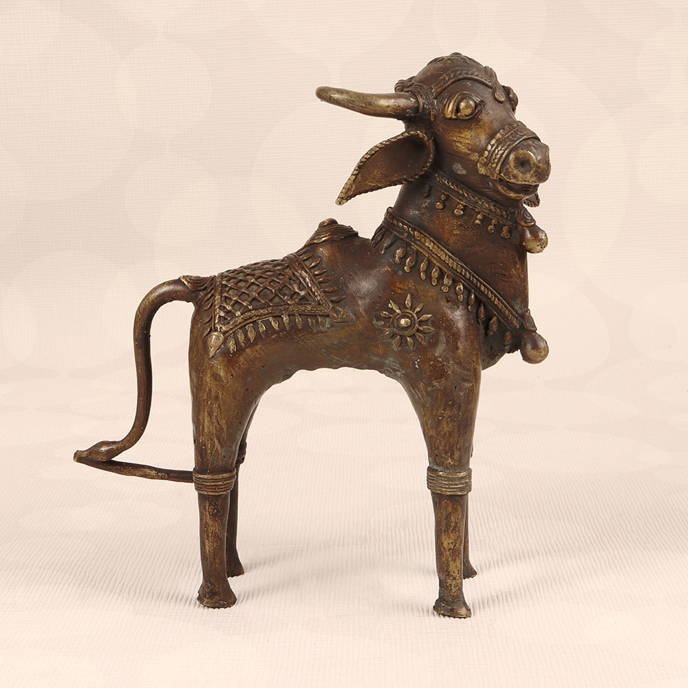 Enhance your spiritual and aesthetic space with our vintage brass statue of Nandi, the revered vahana (vehicle) of Lord Shiva. Meticulously handcrafted by highly skilled and experienced Indian artisans in Tribal Art, this magnificent piece boasts a dark finish that adds an air of mystique and authenticity. The use of high-quality brass ensures durability and a timeless appeal. With its intricate details and classic design, this Nandi statue is a versatile addition suitable for various settings, including homes, offices, restaurants, hotels, or cafes. Ideal for prayer rooms, its presence brings a sense of divine serenity and cultural richness. This statue is not merely a decorative piece but also a meaningful addition to any vintage collection. As a thoughtful and symbolic gift, this vintage brass Nandi statue is perfect for special, festive, or auspicious occasions. Embrace the spiritual heritage and craftsmanship of India with this unique masterpiece that transcends time and tradition.