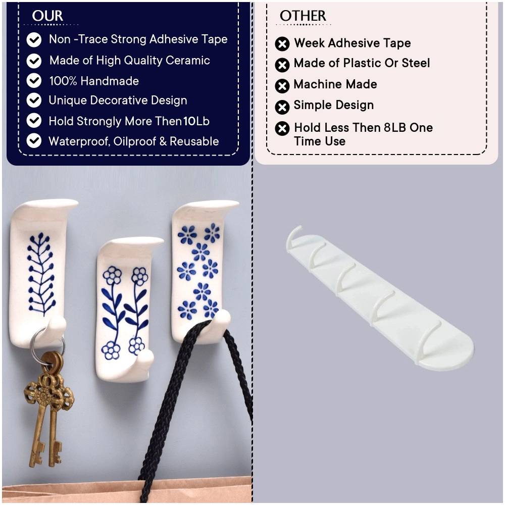 Add a touch of refined elegance to your home with the Handcrafted White Ceramic Adhesive Hook. Its functional design and aesthetic charm make it a versatile solution for hanging everyday items, while the easy installation and removal make it perfect for any home, apartment, or office.