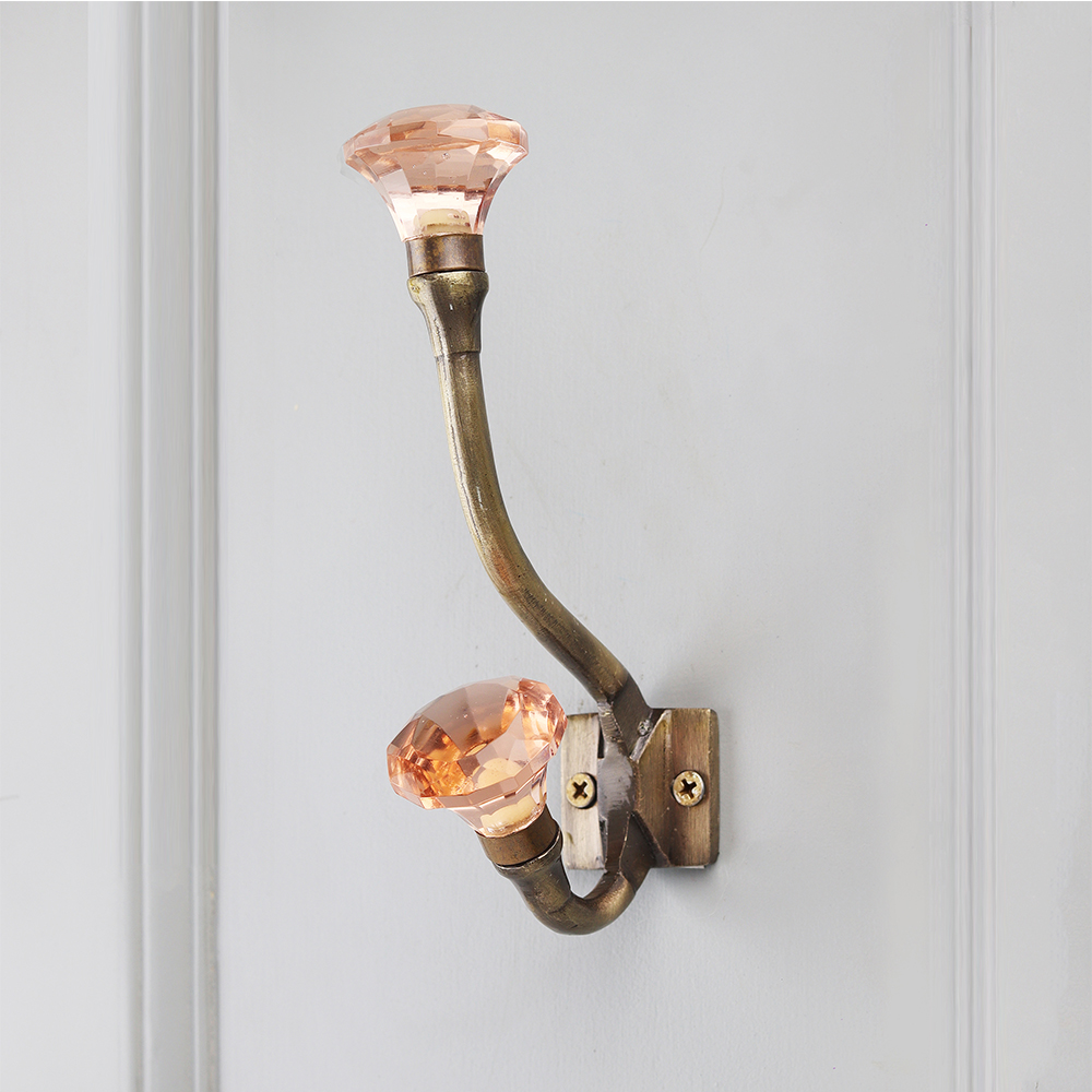• Handmade Amber Diamond Glass Iron Wall Hook