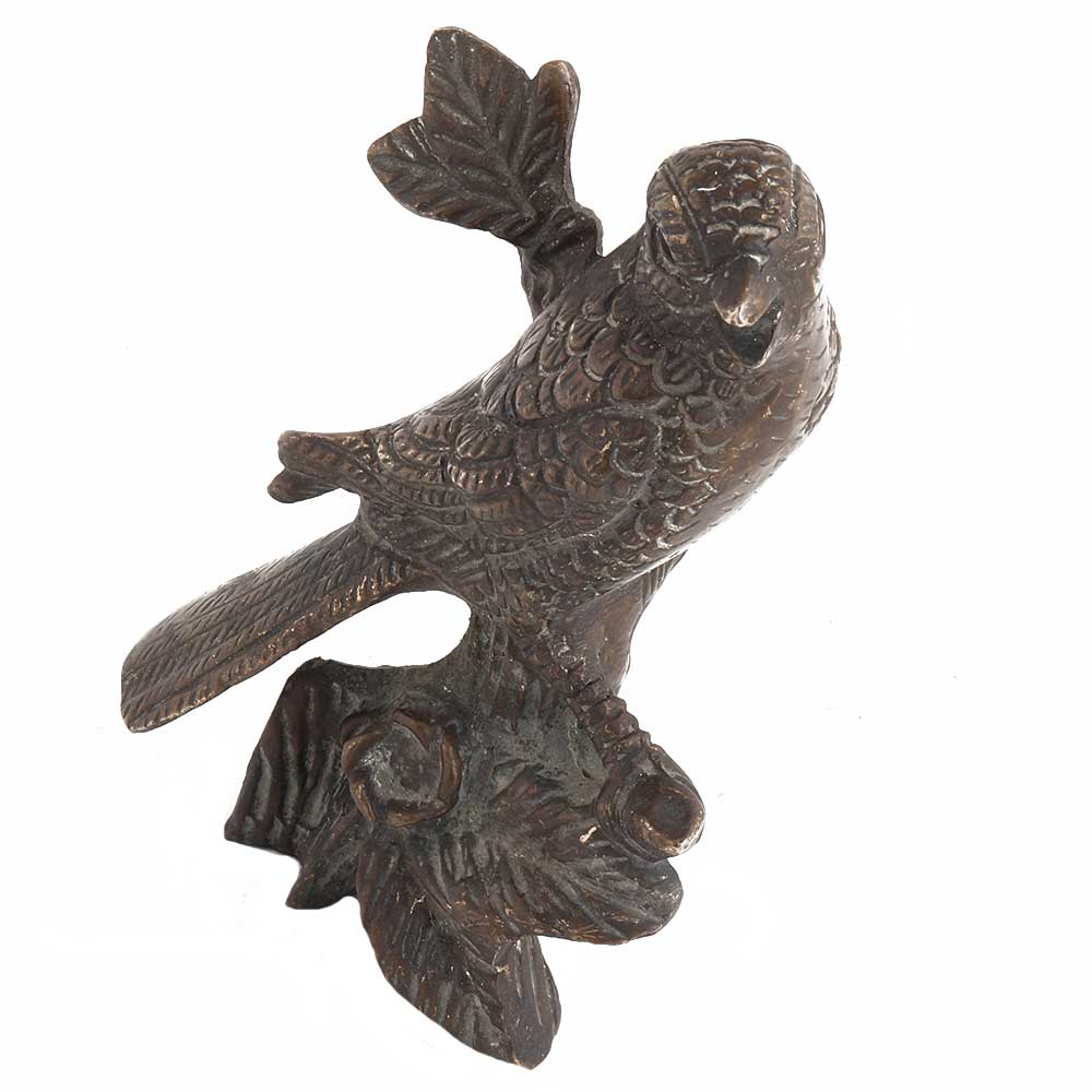 This handmade brass bird sitting on a branch with intricate carving makes it a great piece of valuable collection, a valuable personal alter or a very good present.