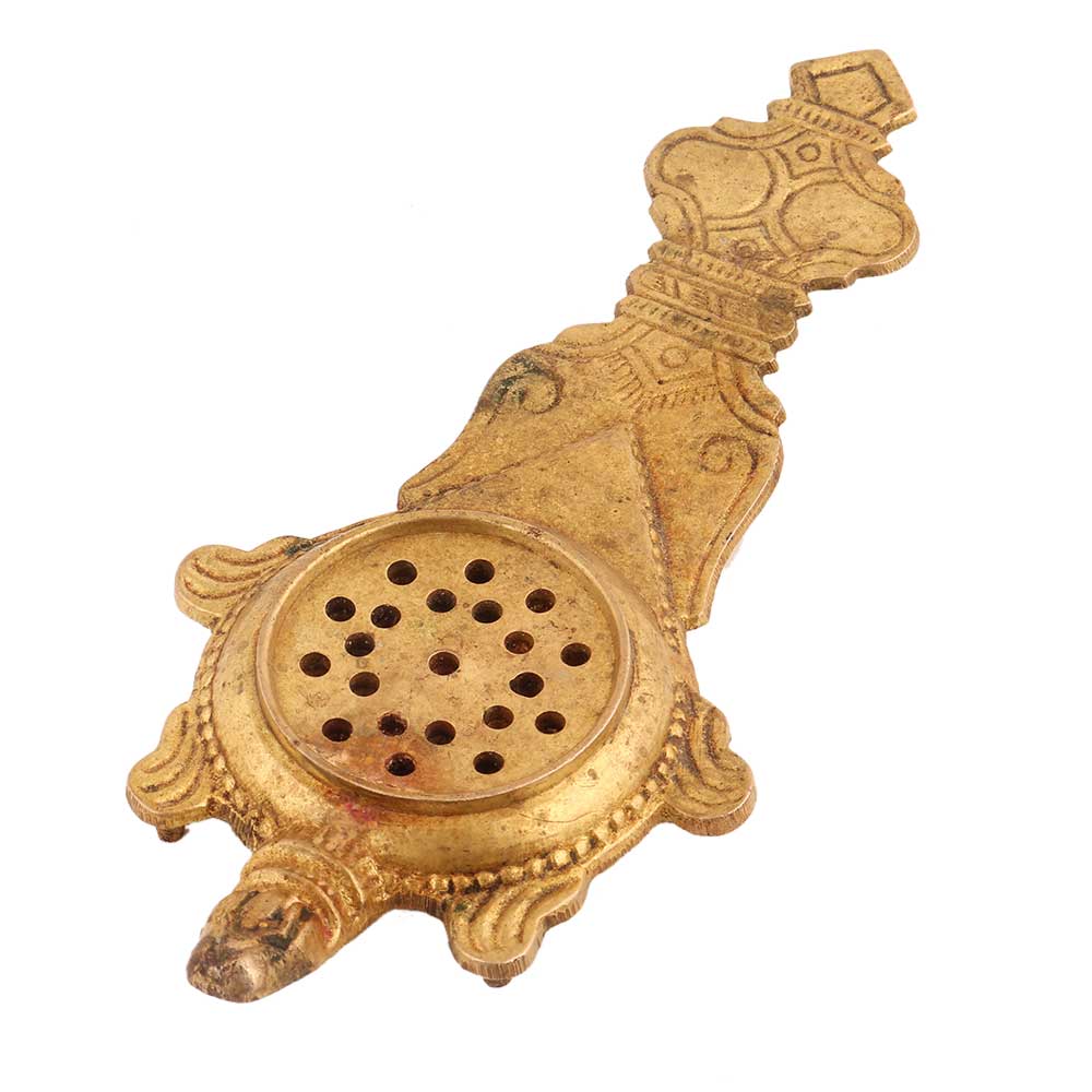Handmade brass Loban Lamp in the shape of a tortoise with a long tail . The divine scent will purify your home when one comes into contact with 'loban' incense, they feel comfortable and stress-free, and their minds are clear. It also repels insects and provides a pleasant energy boost to the home. It is simple to hold in your complete house for conducting "Dhuni."