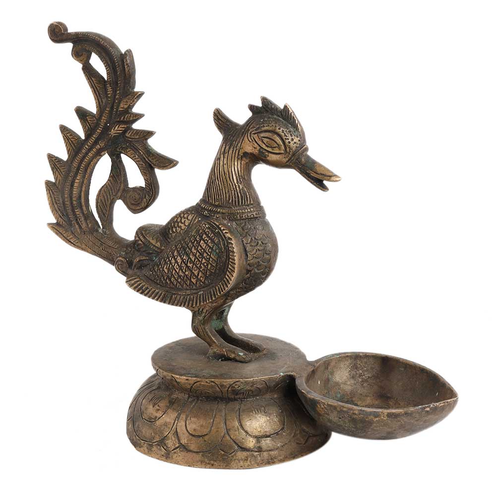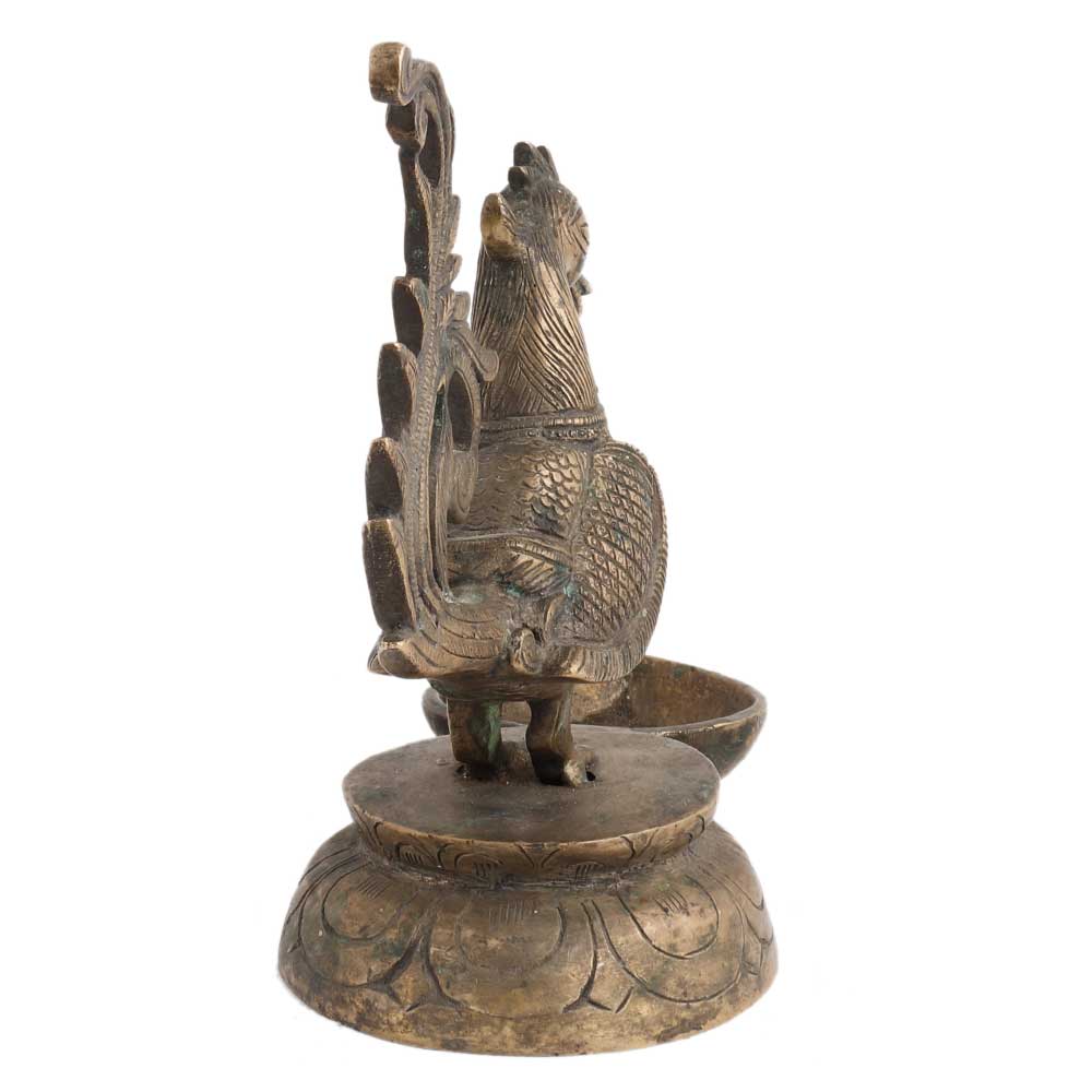 This traditional brass peacock holding a small oil lamp can be used to decorate your house, temple and shrine to bring about a positive vibe and bring harmony.