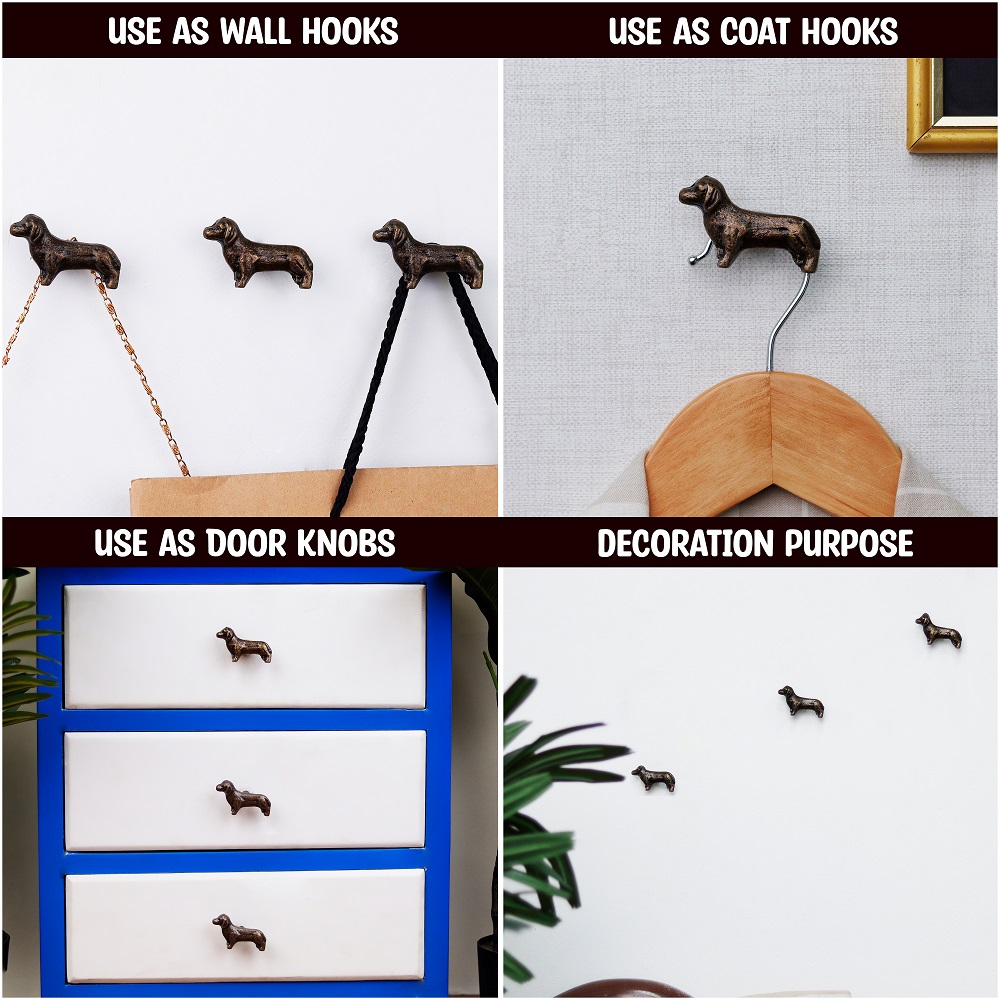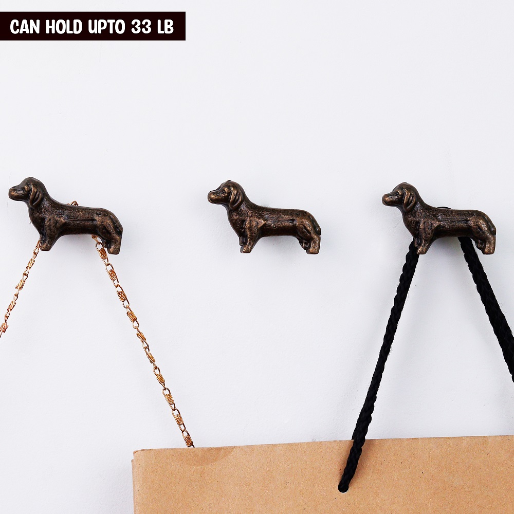 Add a touch of whimsical charm to your home with the Antique Iron Dog Wall Hooks. This pack of three dog-shaped hooks combines rustic style with practical functionality, perfect for organizing your space while showing off your love for pets. The antique iron finish gives these hooks an aged, vintage appeal that adds character and personality to any room. Ideal for hanging coats, hats, bags, and more, these hooks will make both a statement and serve a purpose in your entryway, hallway, or any other space in need of extra storage.