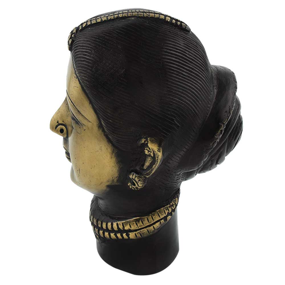 Decorate your home and business with this really exquisite brass Gangaur or gauri head statue. It is the ideal gift for any occasion. Ornamental gauri head figurine, no matter where it is placed, will surely add beauty to the environment. It has lovely black patina that makes it look classy and elegant.