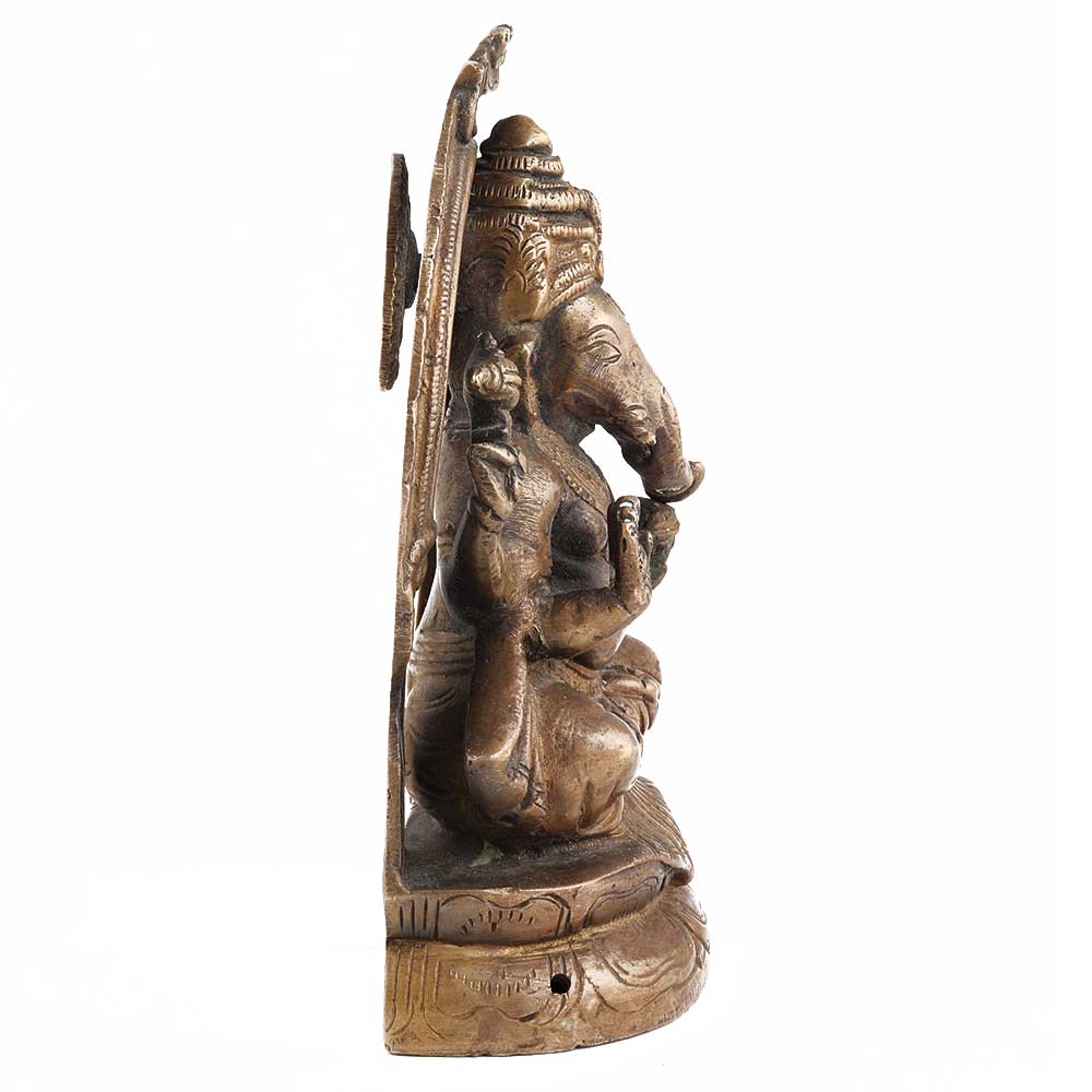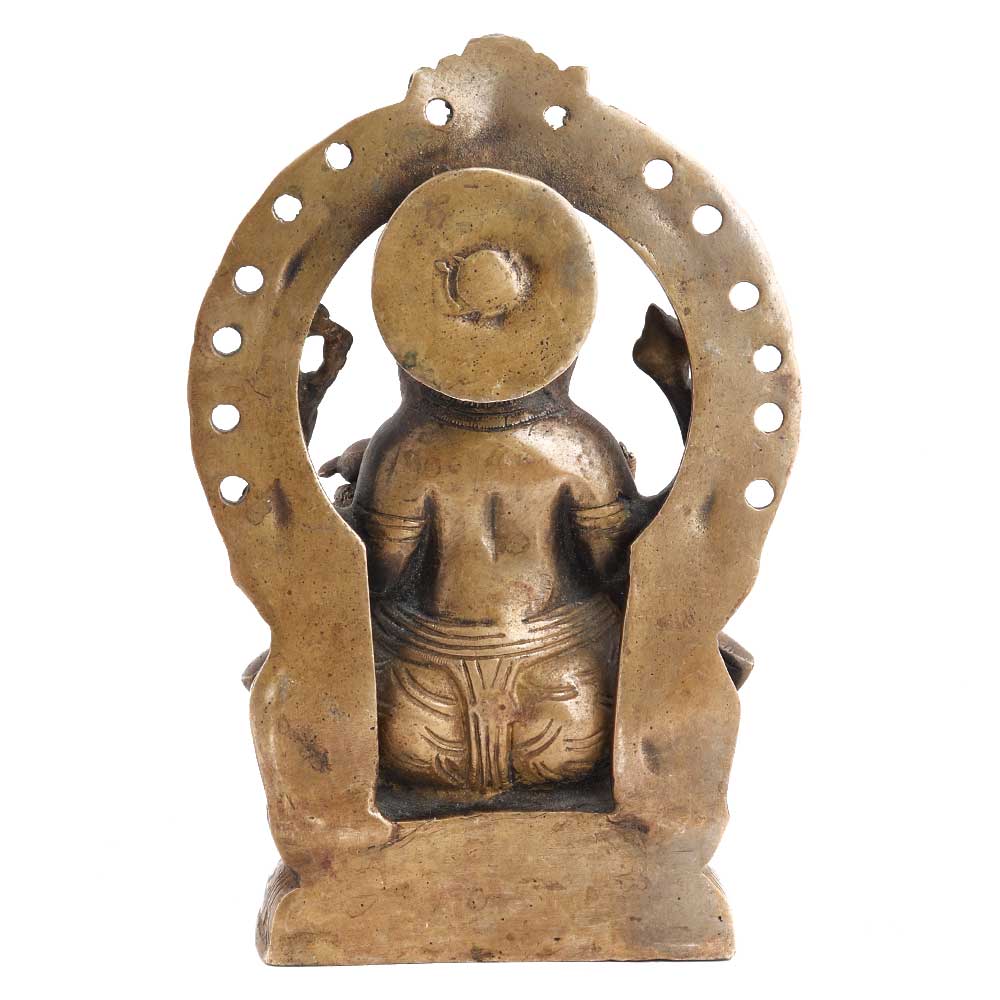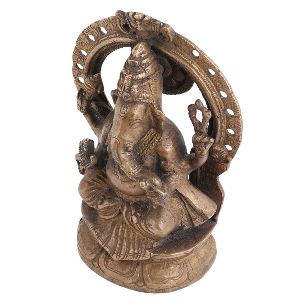 This brass ganesha statue has a beautifully carved arch behind the idol and a beautiful lotus throne. This statue will be a great gift option for housewarming parties, birthday parties, weddings and festivals.