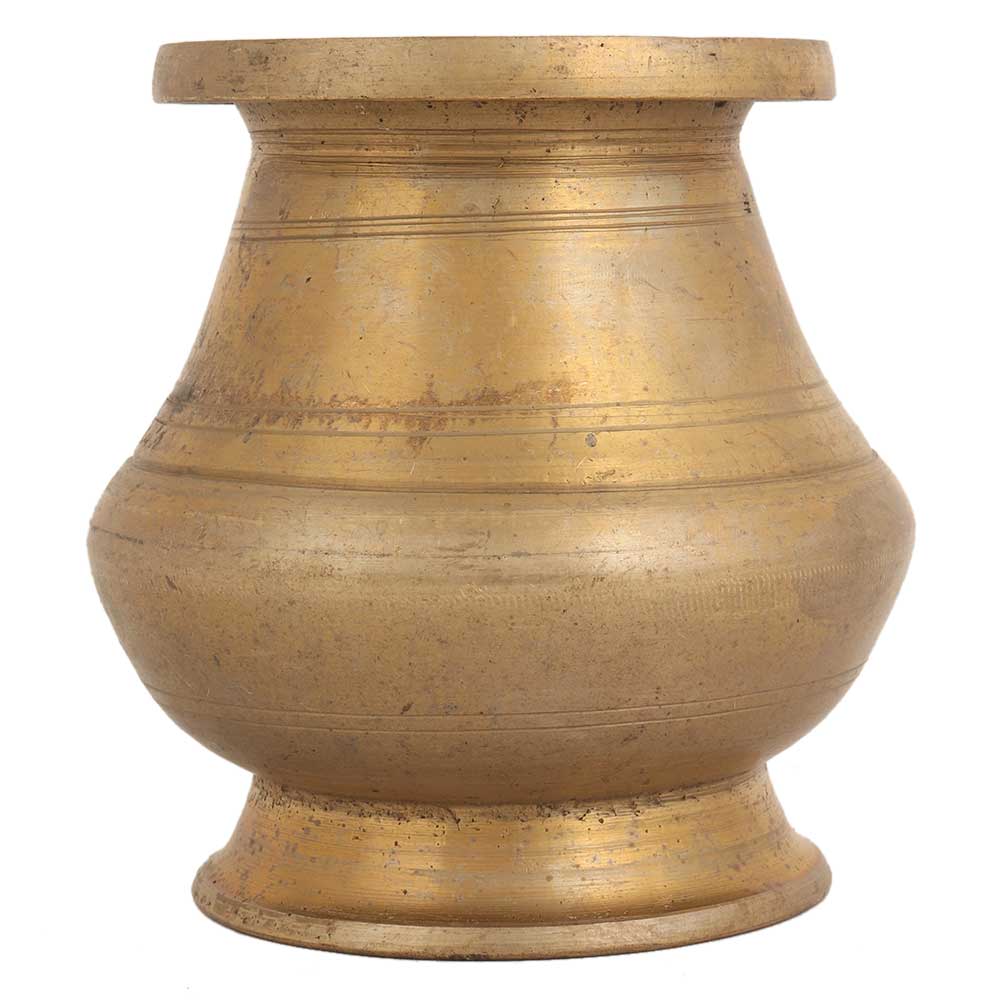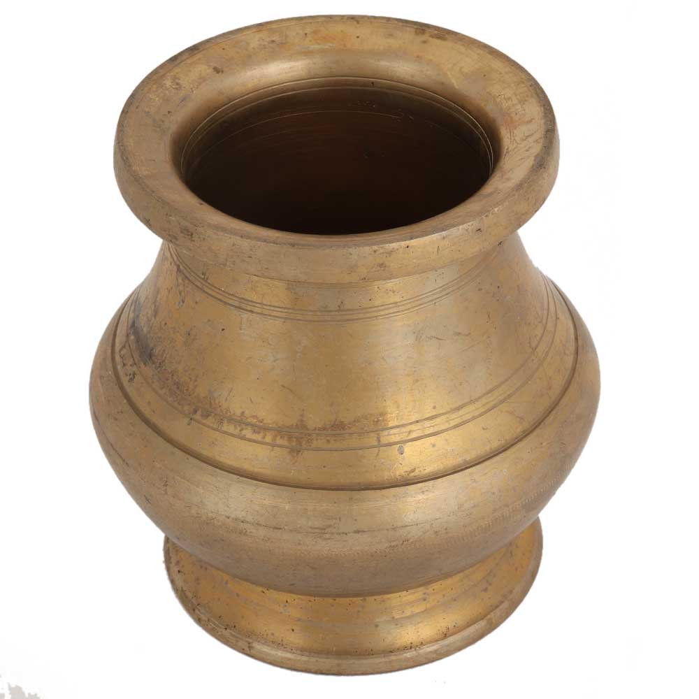Turn this elegant vintage brass pot with a bulbous shape into a timeless collection on your coffee table or console, or turn it into a beautiful vase.