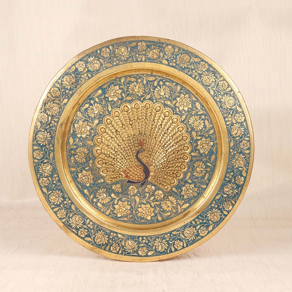 Prepare to be swept away by the captivating charm of this vintage brass hanging plate, adorned with a mesmerizing peacock engraving and vibrant blue enamel work. This exquisite piece is a true work of art, destined to become the centerpiece of any room in your home. Imagine this vintage brass hanging plate gracing the walls of your living room, hallway, or even your outdoor patio, instantly transforming the space into a serene oasis of refined sophistication. Its captivating beauty will not only command attention but also inspire a sense of wonder and appreciation for the artistry of the past. Whether you're a connoisseur of vintage decor or simply seeking to add a touch of elegance to your home, this vintage brass hanging plate is the perfect addition to your collection. Embrace the enchanting allure of this timeless piece and elevate your living space to new heights of beauty and elegance.