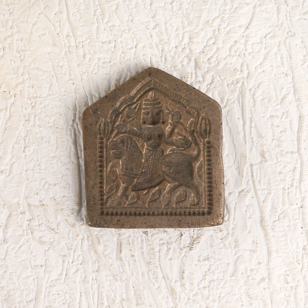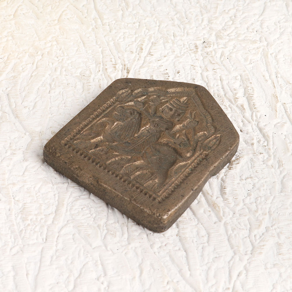 Enhance your love for vintage artistry and traditional craftsmanship with this exquisite Vintage Bell Metal Jewelry Mold. Handmade by highly talented Indian craftsmen, this square-shaped mold bears an enchanting engraving of a goddess figure, beautifully brought to life in an antique brown finish. Crafted from high-quality bell metal, this jewelry mold has a rich historical significance. It serves as a testament to the time-honoured practices of gold and silver smiths, who used such molds to create intricate jewelry pieces. The mold, a work of art itself, is not confined to the jeweler's studio, it can be a captivating addition to your home, office, restaurant, hotel, cafe, or shop, enhancing the ambiance with its timeless charm. This exquisite piece is an ideal choice for collectors of vintage items and makes for a thoughtful gift on special, festive, or auspicious occasions. Imbued with cultural and artistic significance, this Vintage Bell Metal Jewelry Mold connects you to the heritage of skilled artisans and brings a touch of elegance to any space.