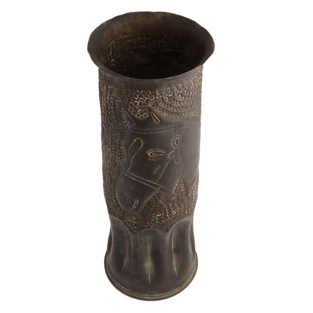 This handmade brass vase carved with a horse face is unique in shape and design. Use it to display fresh flowers or dried leaves, as table decoration and as a gift for friends and family.