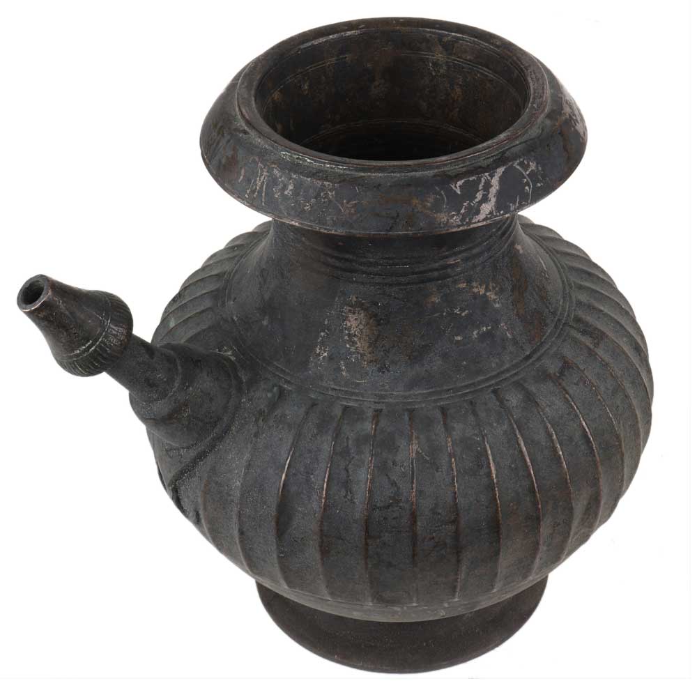 Handmade Black Stained Brass Pot with Spout traditionally made for storing the holy water is used for decoration, as a corporate gift, return gift as it has a vintage look.