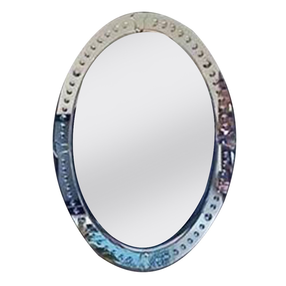 This Blue Oval Venetian Mirror provides a perfect combination of classic and modern styles with style accents. The etching design and the intricate backrest create an urban style.