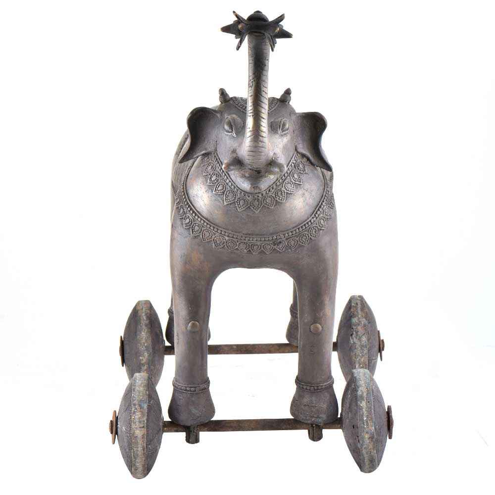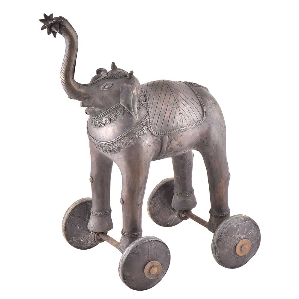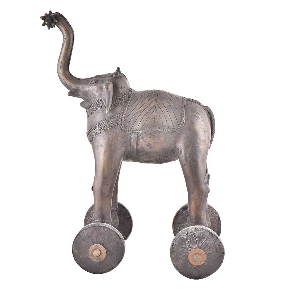 Handmade brass elephant statue with trunk up holding a flower is fixed on rolling wheels made of pure brass by expert artisans who are masters of their trade. This statue is handmade and is an excellent home décor product. The wheels make it convenient to move it from one place to another. The children love to pay with it and it proves to be an excellent gifting option for friends and relatives.