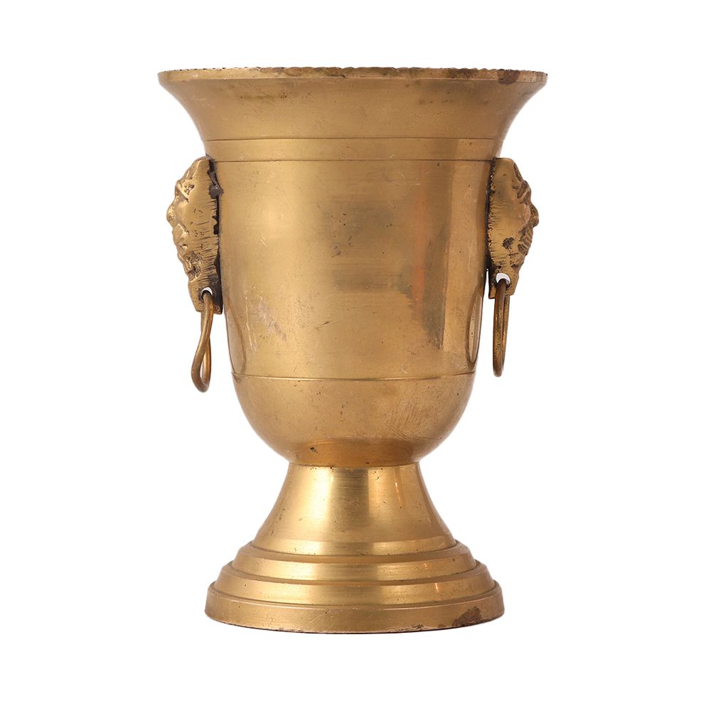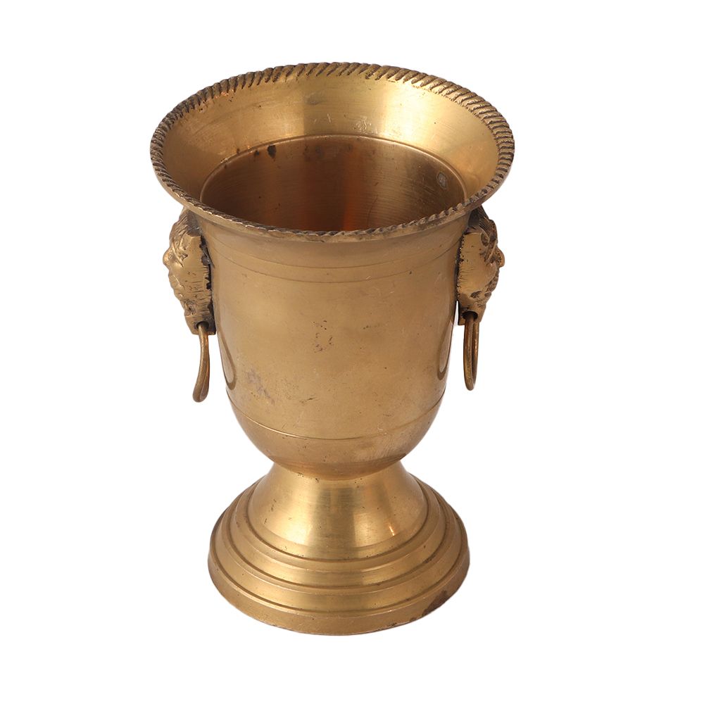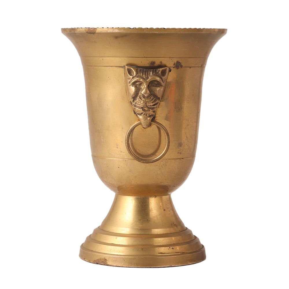 An indoor planter for your living room, patio garden or entryway. This designer flower pot is made of high quality brass with a shiny brown finish. It has two handles with engraved lion on the sides. A handcrafted flower pot made by skilled and experienced Indian artisans using ancient methods. Place this exquisite piece on your balcony to enhance the decoration. Since it is made of brass, it spreads positive energy in the house and also beautifies the interior with its appearance. Place it on a table, shelf, reception counter, bill counter or altar and add an alluring flair to the decor. An ideal gift for any special, festive or auspicious occasion for your loved ones.