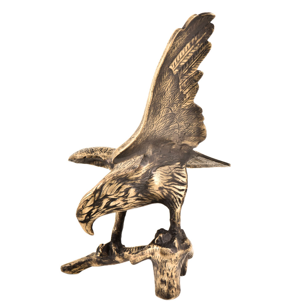 Made from solid bras with a lovely golden shine is beautifully carved with an eye satisfying look. The brass Eagle has an exquisite shape with sharp eyes and distinct feathers. Serves as a good gift and a perfect decorative display on a coffee table, end table or a book shel.