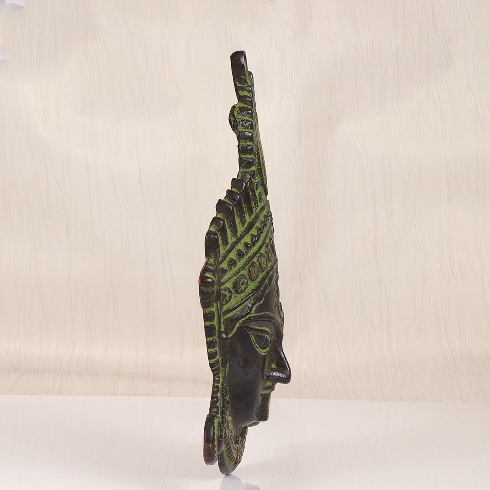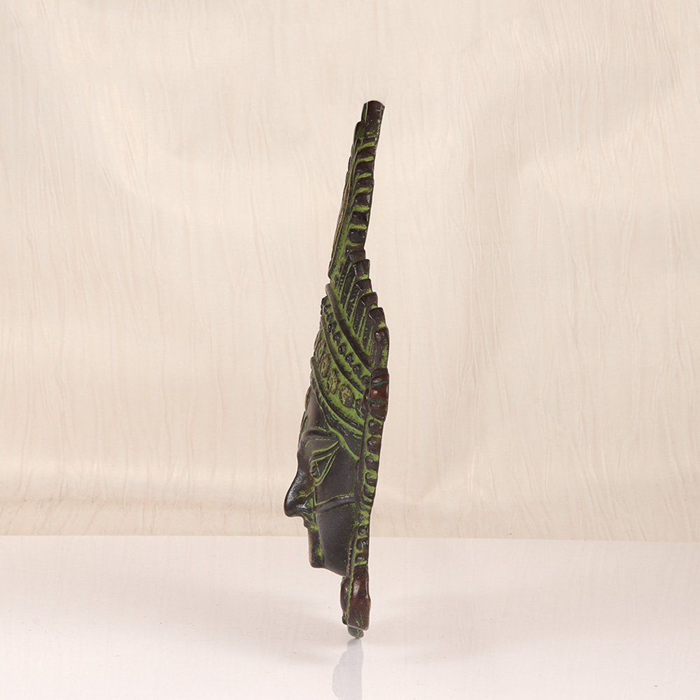 Kali, the fearsome and revered Hindu goddess, is a force to be reckoned with. This stunning brass wall hanging embodies her fierce energy, inviting you to connect with the transformative power of the divine feminine. Crafted with exquisite attention to detail, this piece is a work of art in its own right. The solid brass construction and dark, antique finish give it a sense of weight and gravitas, while the intricate design captures the Goddess Kali in all her glory. Her fierce expression, her flowing hair, and her ornate adornments all come together to create a mesmerizing and awe-inspiring visual. Hanging this brass Kali wall hanging in your home or sacred space is an invitation to tap into the Goddess's energy. Kali is a complex and multifaceted figure, representing both destruction and rebirth, death and renewal. By inviting her presence into your life, you open yourself up to the process of transformation, to the shedding of what no longer serves you, and the embrace of your own untamed power. Whether you're a devoted follower of the Goddess or simply seeking to infuse your space with profound spiritual energy, this brass Kali wall hanging is a stunning and impactful addition. Let it inspire you to face your fears, to let go of the past, and to surrender to the cycles of life. Kali is here to guide you on the journey of self-discovery and empowerment.