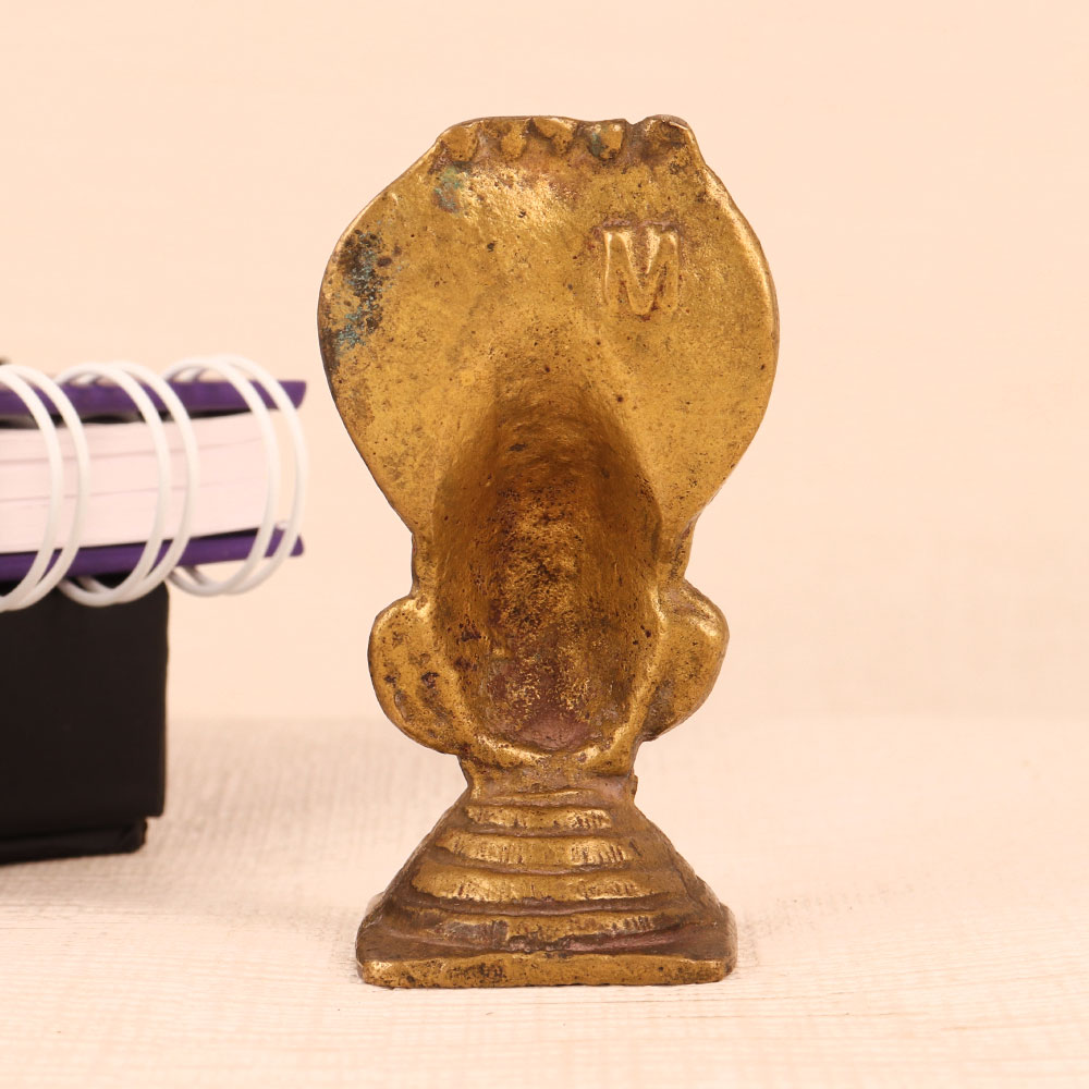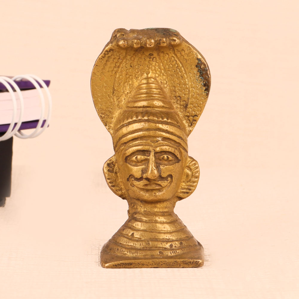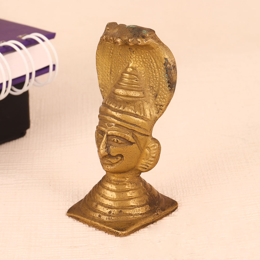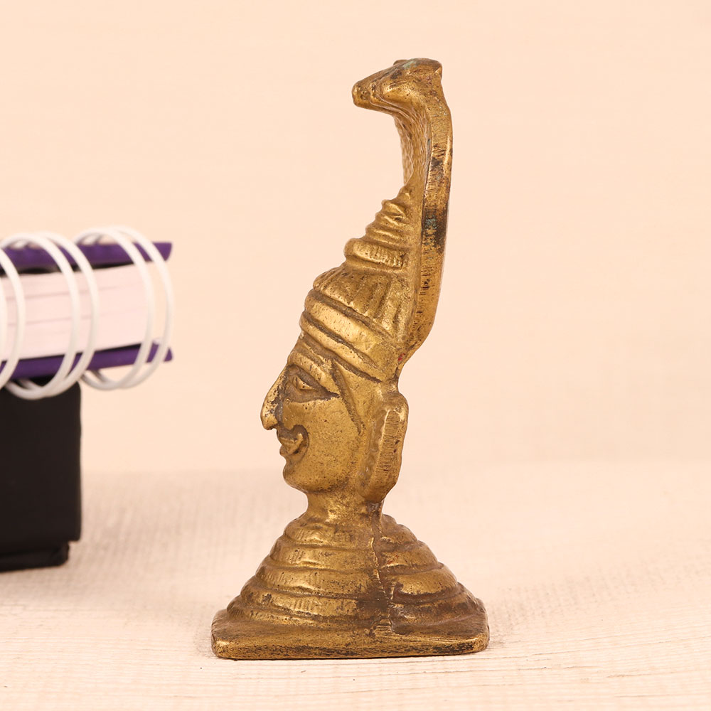 Buy a small brass Lord Shiva statue online which is a true masterpiece meticulously handcrafted by highly skilled Indian artisans. Cast in the finest quality brass, this captivating representation of Lord Shiva stands as a symbol of divinity and power. Lord Shiva, adorned with a cobra coiled gracefully atop his head, exudes an aura of serene strength. The statue is meticulously finished in an antique brown patina, adding an authentic vintage touch to your surroundings. Versatile in its placement, this Lord Shiva statue is perfect for your home, office, restaurant, hotel, cafe, or shop's prayer room. Its presence can inspire devotion, meditation, and a tranquil ambiance. For collectors of vintage treasures, this handcrafted piece is a must-have addition to your collection, showcasing the rich artistic heritage of India. It's a statement of timeless elegance that will draw admiration from all who see it. What's more, this divine masterpiece makes for a meaningful and thoughtful gift on special, festive, or auspicious occasions, allowing you to share the blessings and positive energy of Lord Shiva with your family, friends or relatives. Embrace the divine essence and artistic finesse embodied in this small brass Lord Shiva statue, and let it grace your space with grace and spirituality.