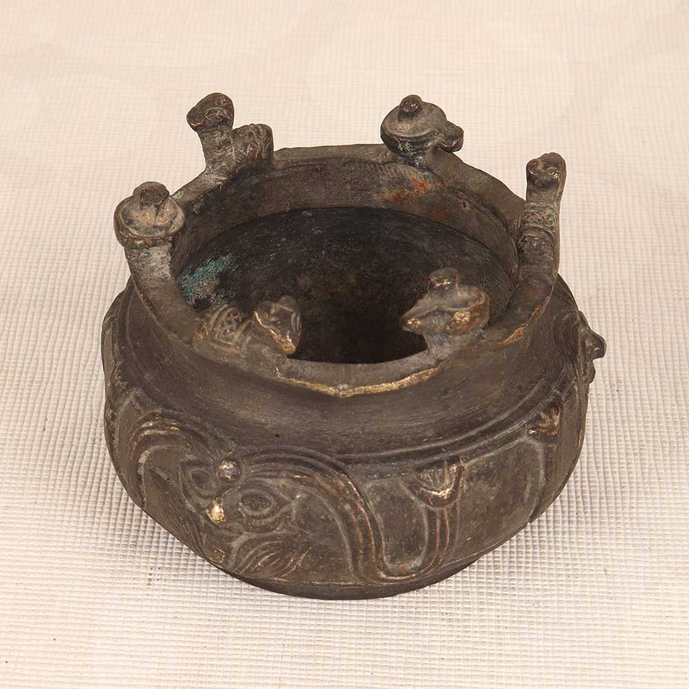 - Intricately designed vintage brass pot