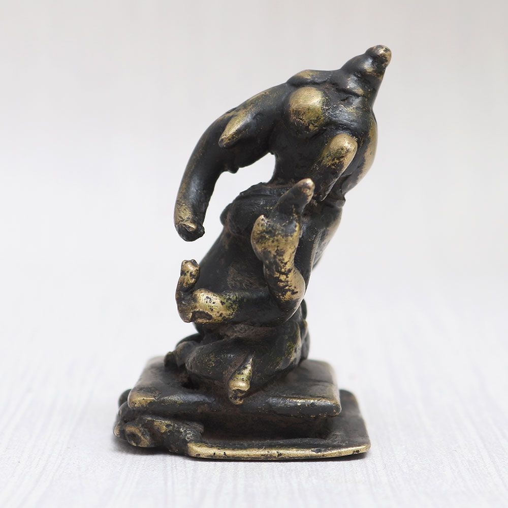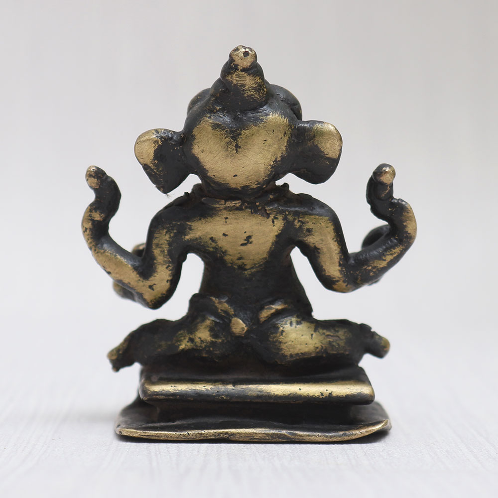 Enhance the ambience of your space with the captivating allure of this exquisite vintage brass statue of Lord Ganesha in a seated position. Handcrafted from premium-quality brass, this Ganesh Statue showcases the impeccable craftsmanship of skilled Indian artisans. Its intricate detailing and rich patina reflect the timeless beauty of traditional artistry. This versatile piece is perfect for adorning your home, office, restaurant, hotel, or cafe temple, adding a touch of divine grace to any environment. It also serves as a remarkable collectible, an eye-catching exhibit, or a splendid decorative accent. The Ganpati Statue’s spiritual significance and aesthetic appeal make it an ideal gift for your loved ones on special, festive, or auspicious occasions, symbolizing blessings, wisdom, and prosperity. Lord Ganesha, the remover of obstacles and the embodiment of wisdom, is revered in Hindu mythology. He is known to bring good fortune and success to those who seek his blessings. This Ganesh idol for car serves as a constant reminder of his divine presence, ensuring a safe and auspicious journey. Invite the divine energy of Lord Ganesha into your life with this remarkable brass statue, a timeless treasure that exudes elegance and spirituality.