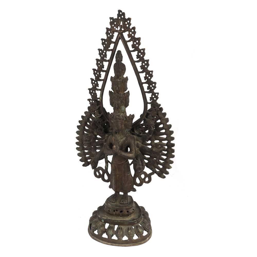 This is a handmade brass statue made by the local artisans of Nepal and this Avalokiteshwara statue is actually the lord of compassion and he sits on a lotus throne upon a lunar disc .Great for those in scholastic, literary, artistic or media fields, display this scared statue prominently in a main room of the home or workplace.