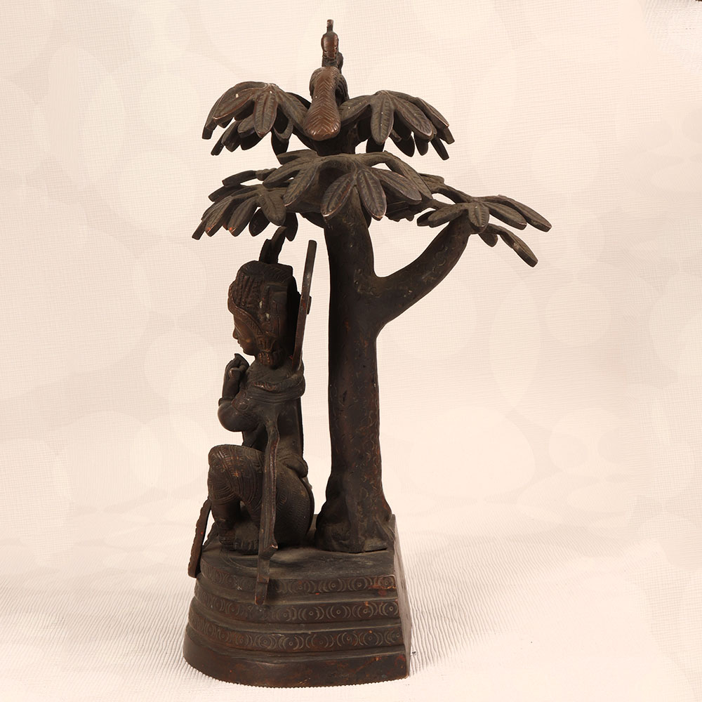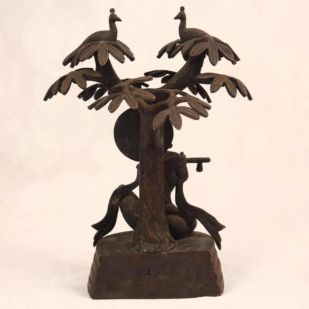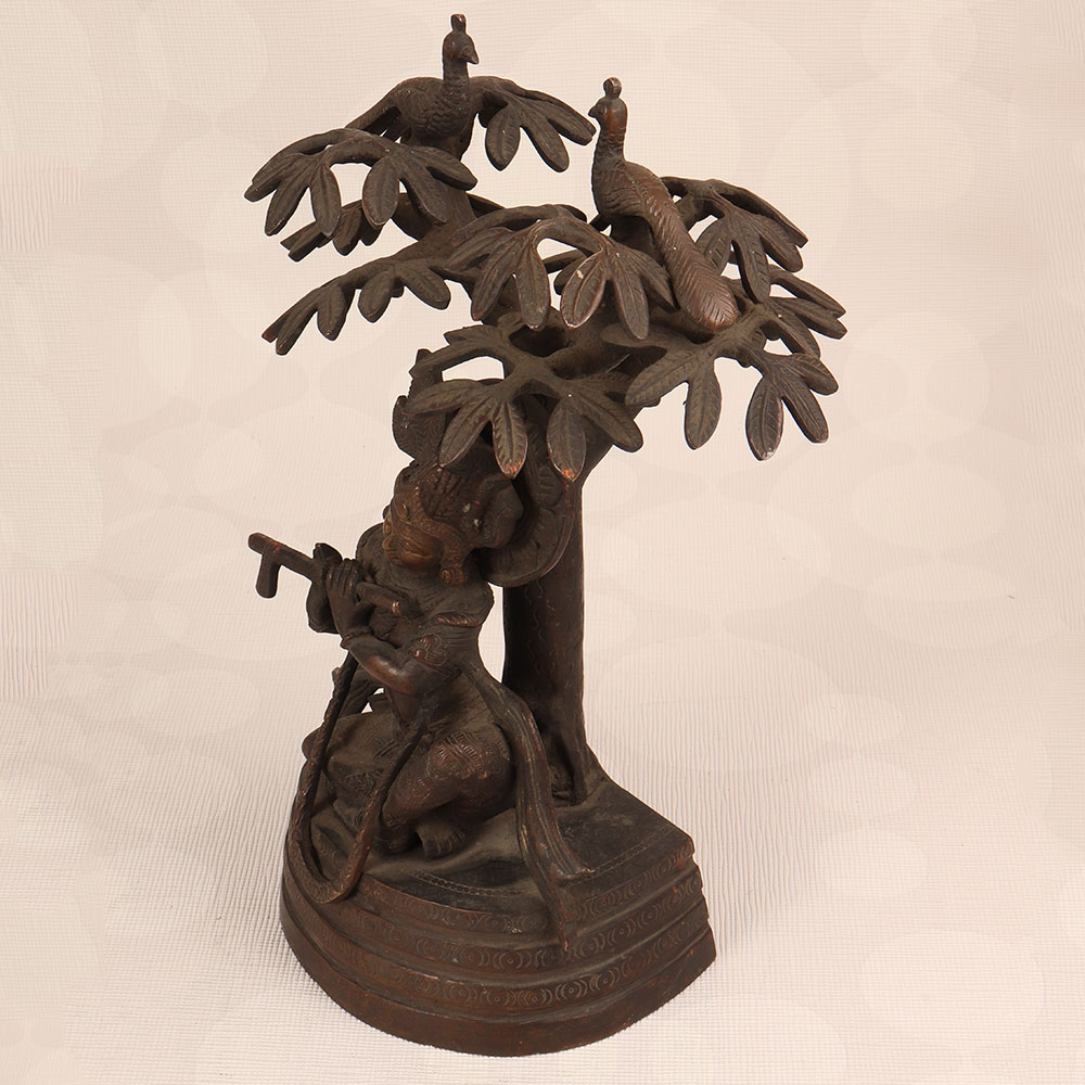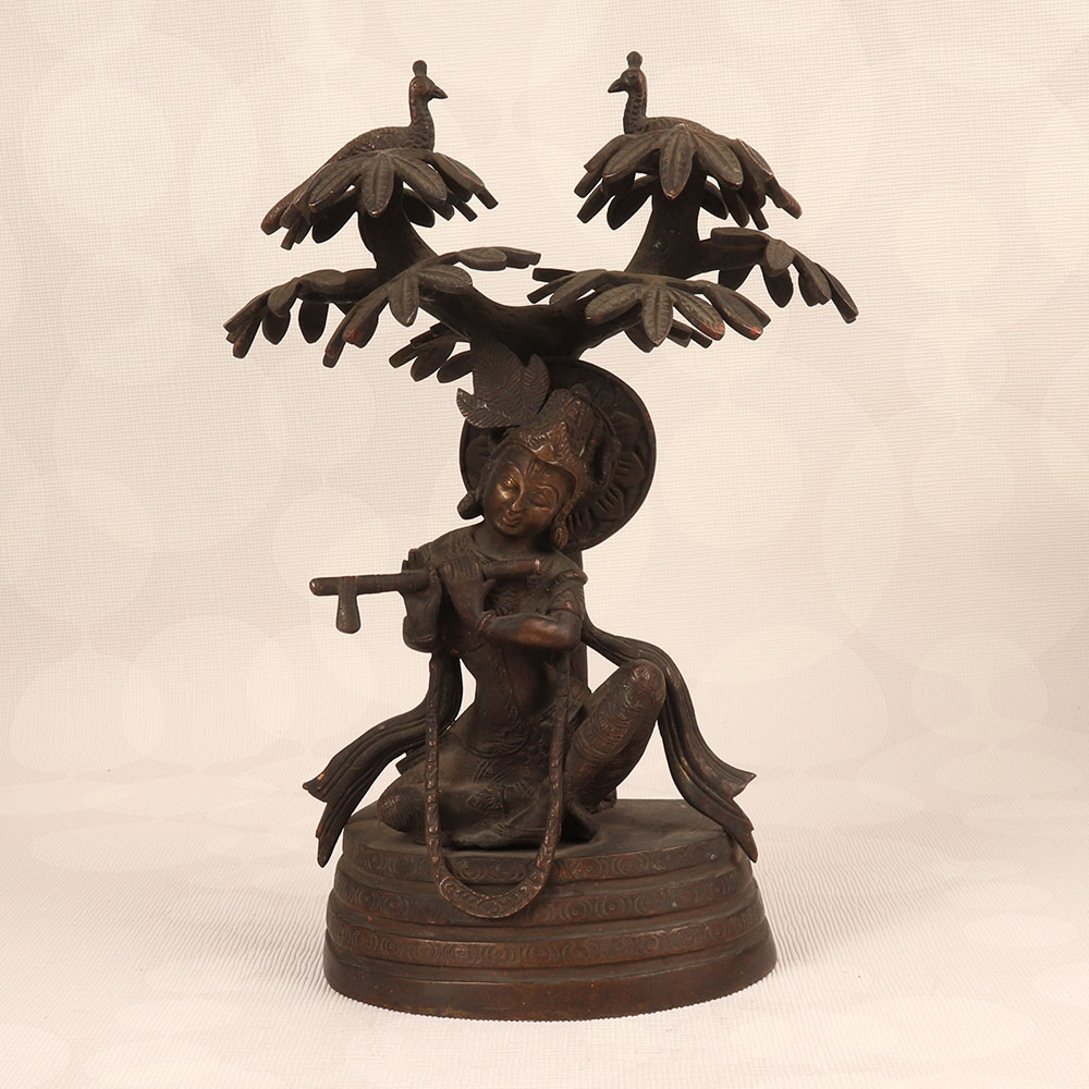 Enhance your space with the timeless charm of our Vintage Brass Statue of Lord Krishna that is a masterpiece crafted by professional Indian artisans. Intricately handmade from high-quality brass, this exquisite statue features Lord Krishna in a contemplative pose, seated under a tree, playing the flute. The dark finish adds an antique allure, reminiscent of classical artistry. This divine creation transcends the boundaries of culture, making it a versatile addition to any setting. Perfect for home, office, restaurant, hotel, or café prayer rooms, it exudes an aura of tranquillity. The statue of Lord Krishna not only honours the divine but also becomes a captivating piece for vintage collectors. For a harmonious ensemble, consider complementing it with our Lord Ganesha statues. Together, they symbolize prosperity, wisdom, and divine protection. A meaningful and elegant gift, this statue is ideal for special, festive, or auspicious occasions, providing a touch of spirituality and aesthetic appeal to your family, friends or relative’s lives. Embrace the spiritual resonance of this vintage masterpiece, adding a touch of ancient grace to your surroundings.