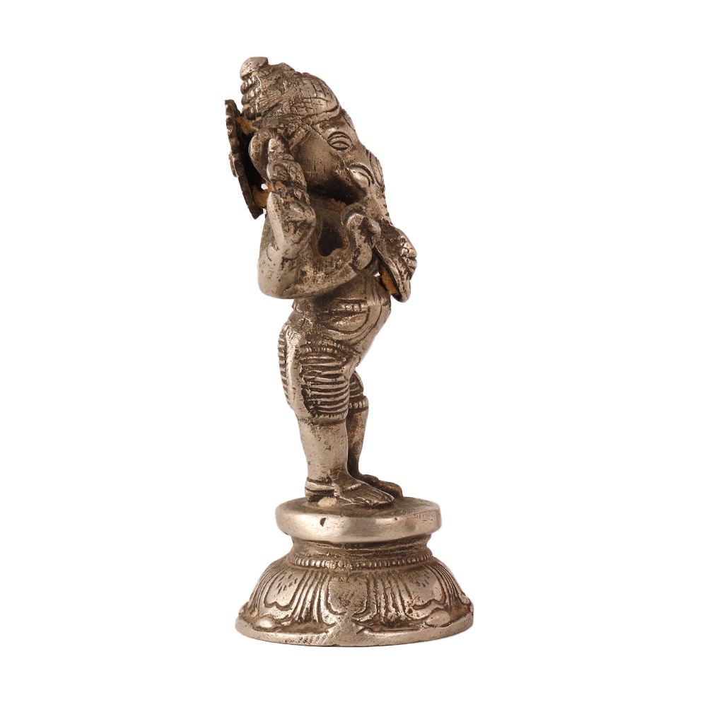 The Brass Statue Religious Sculpture is a beautifully crafted piece of artwork that represents a religious figure or deity. Made of brass, this statue has a golden finish that enhances its beauty. The intricate details and fine craftsmanship of the statue are a testament to the skill of the artisan who created it. Whether it is a statue of Lord Ganesha, the Hindu deity known as the remover of obstacles and the god of wisdom, or a statue of Buddha, the spiritual teacher who taught the path to enlightenment, a brass statue religious sculpture is a great way to bring positive energy and blessings into any space. Handmade brass statues can be placed on a personal altar, in a Hindu shrine, or in a meditation room. They serve not only as a visual representation of the deity but also as a source of inspiration and guidance for those who seek to deepen their spiritual practice.