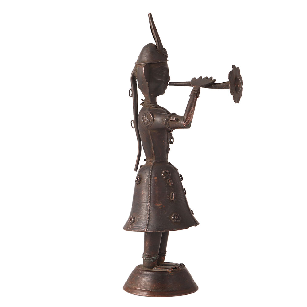 The Handmade Brass statue of a Musician Lady is a beautiful piece of art that showcases the skills of traditional craftsmanship. It is made of brass and features intricate engravings, adding depth and texture to the figurine. The figure depicts a lady musician playing a musical instrument, capturing the essence of music and art. The figurine is hand-crafted, ensuring the highest level of quality and attention to detail. It makes a great addition to any collection of musical memorabilia or as a decorative piece in any home or office. The brass material used in its construction ensures durability and longevity, making it a timeless piece that can be passed down for generations. Buy Brass Statue online of this beautiful and intricate figurine is a celebration of the beauty and creativity of traditional art forms.